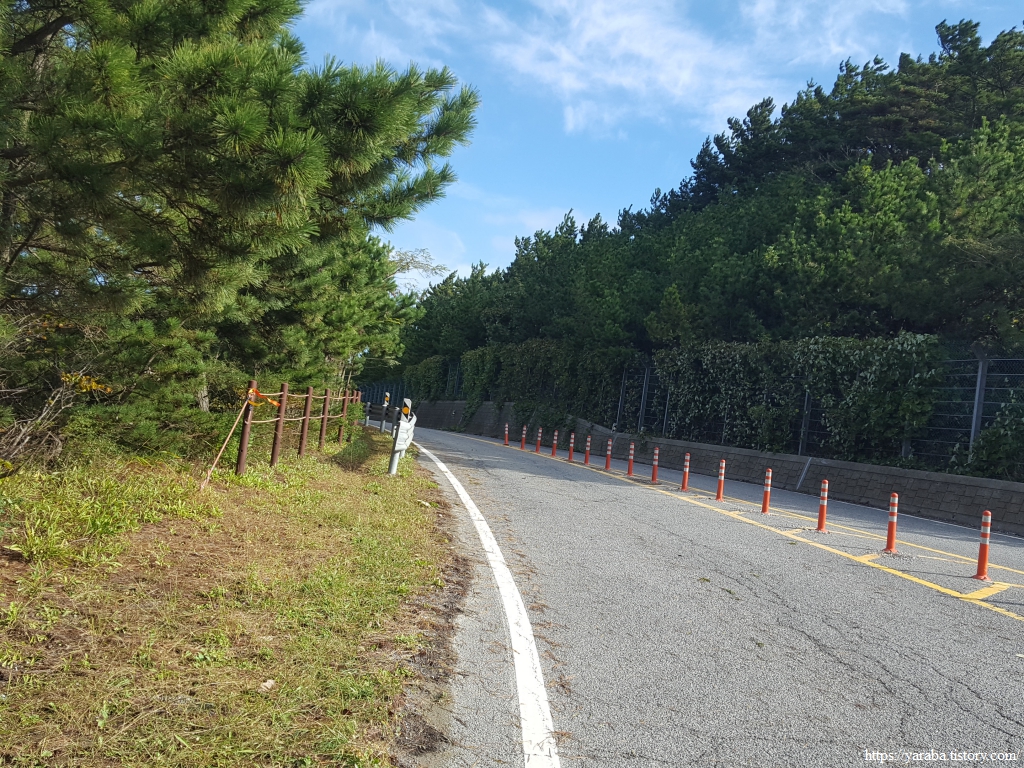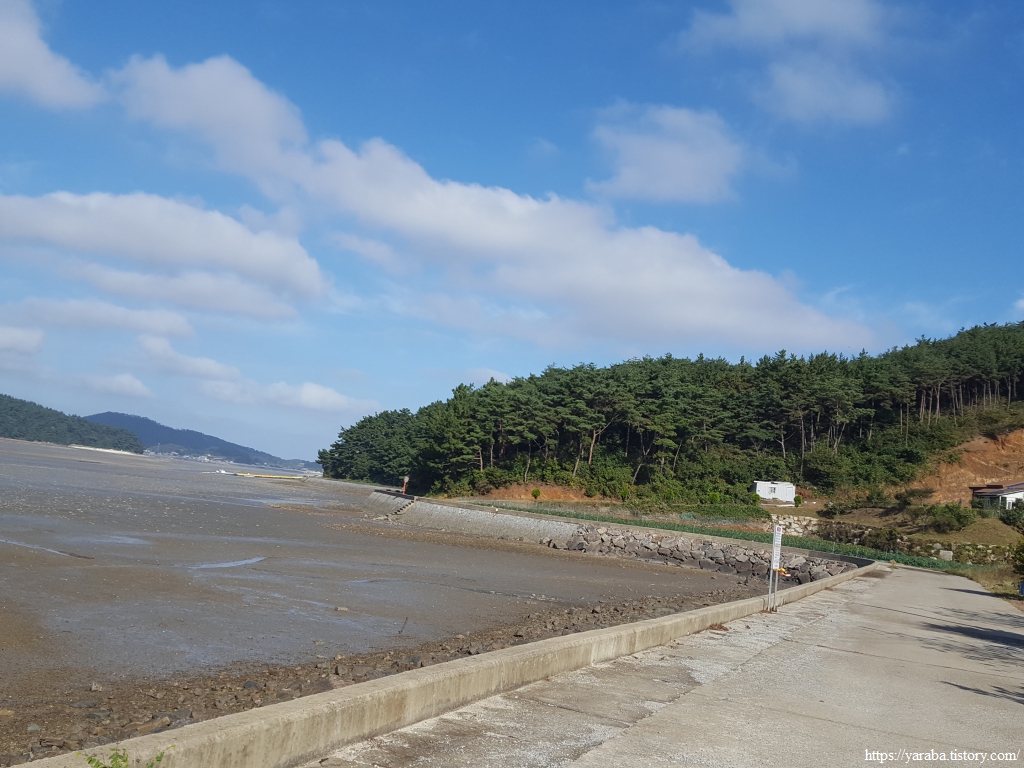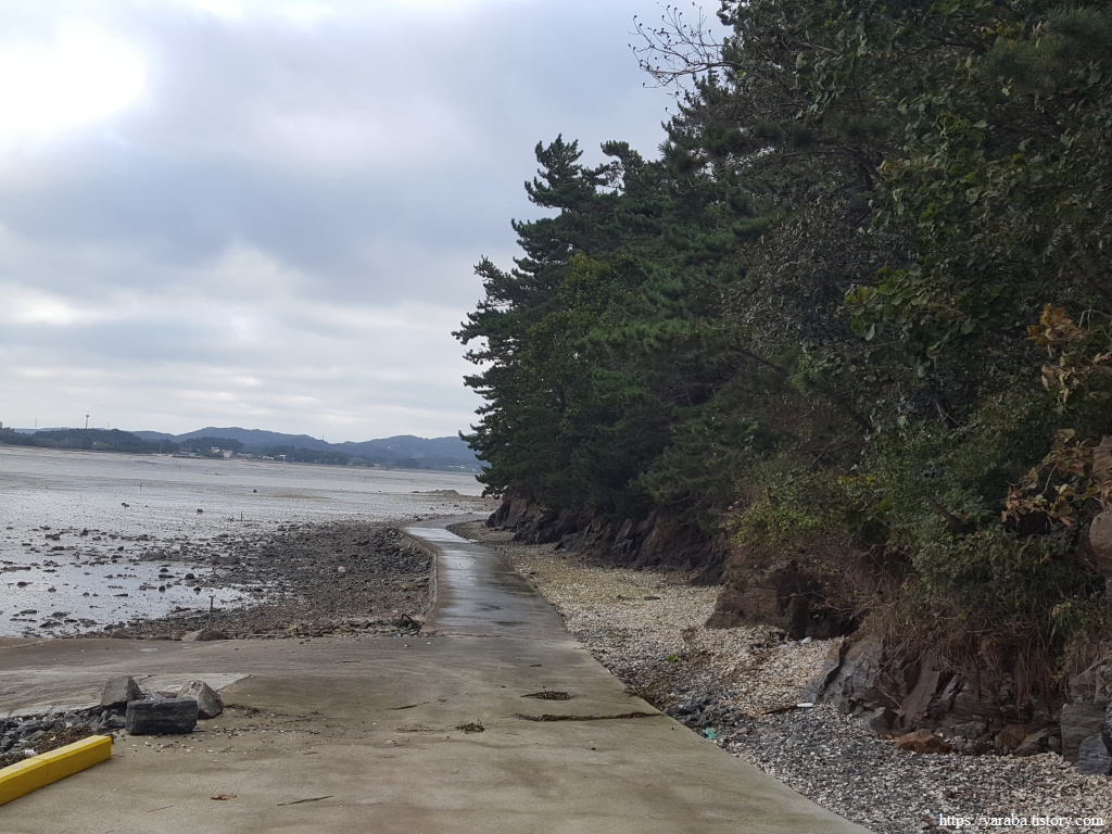 소근진로 갓길을 따라 걸으며 웅도를 빠져나간다.
