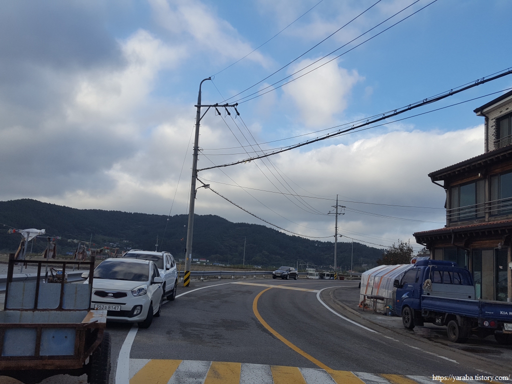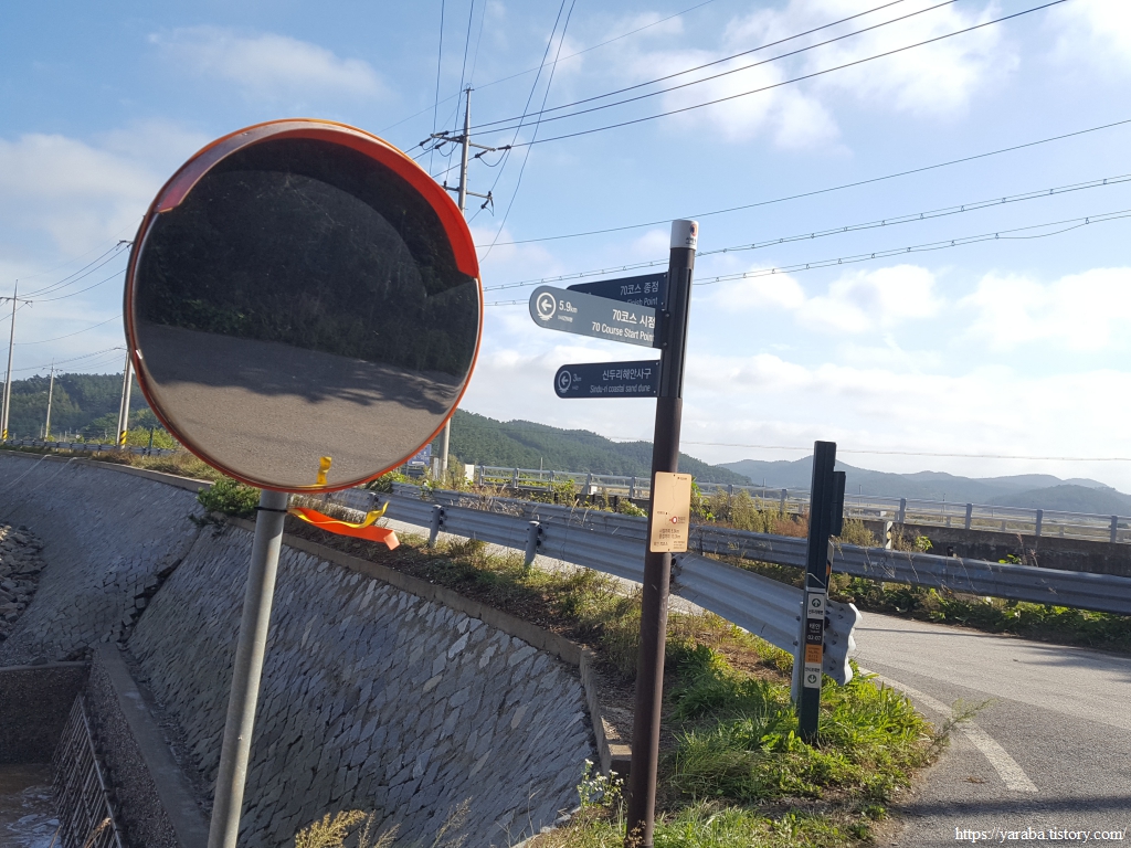 안소근진 마을은 버스 종점이다. 종점에서 잠시 쉬고 있는 시내버스를 뒤로하고 북쪽으로 계속 길을 이어간다. 70코스를 시작할 때만 해도 이곳이 아득하게 보였는데, 이제는 북쪽의 출발지인 개목항이 아득하게 보인다.