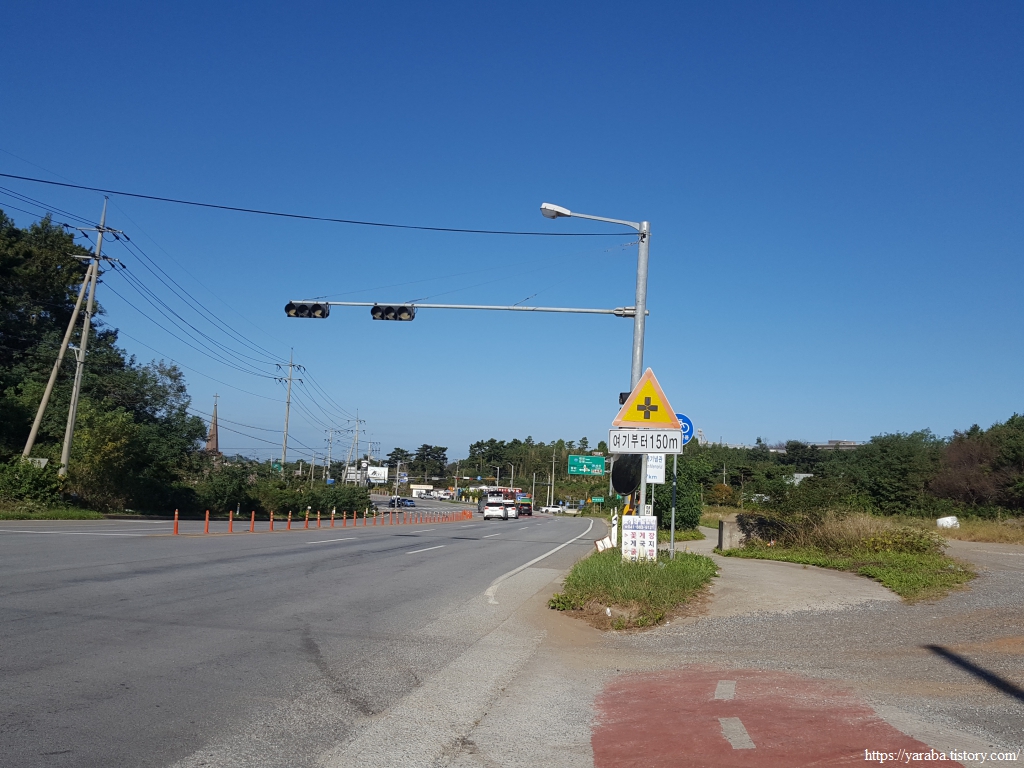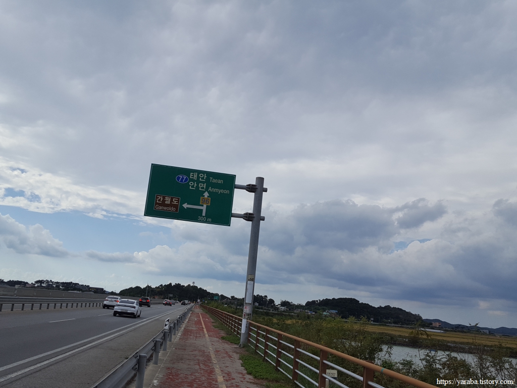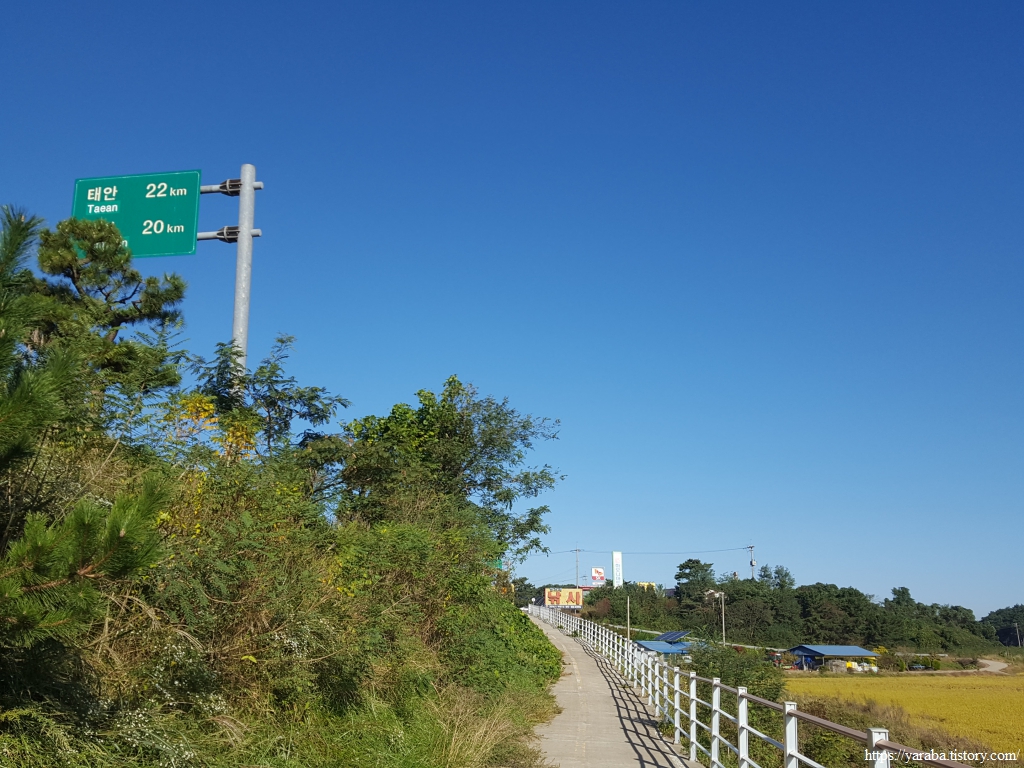 간월호 창리 쉼터 공원과 서산 버드랜드로 이어지는 길이 있는 교차로에서는 굴다리를 통과하여 길을 이어간다. 우리는 창리 쉼터 공원 인근 펜션에서 하룻밤 쉬었다가 길을 이어간다.