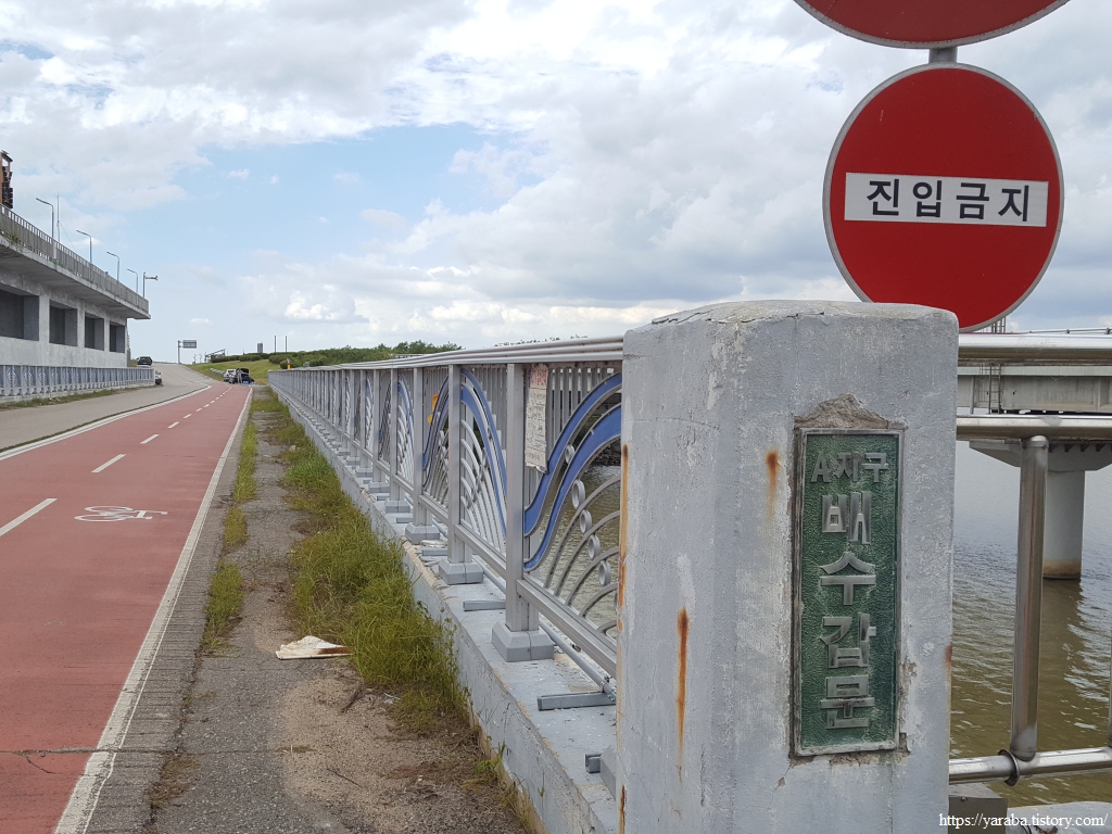 창리포구를 지난 64코스는 서산 B지구 배수갑문이 있는 창리교를 건너서 서산 B지구 방조제의 둑방길로 진입한다.