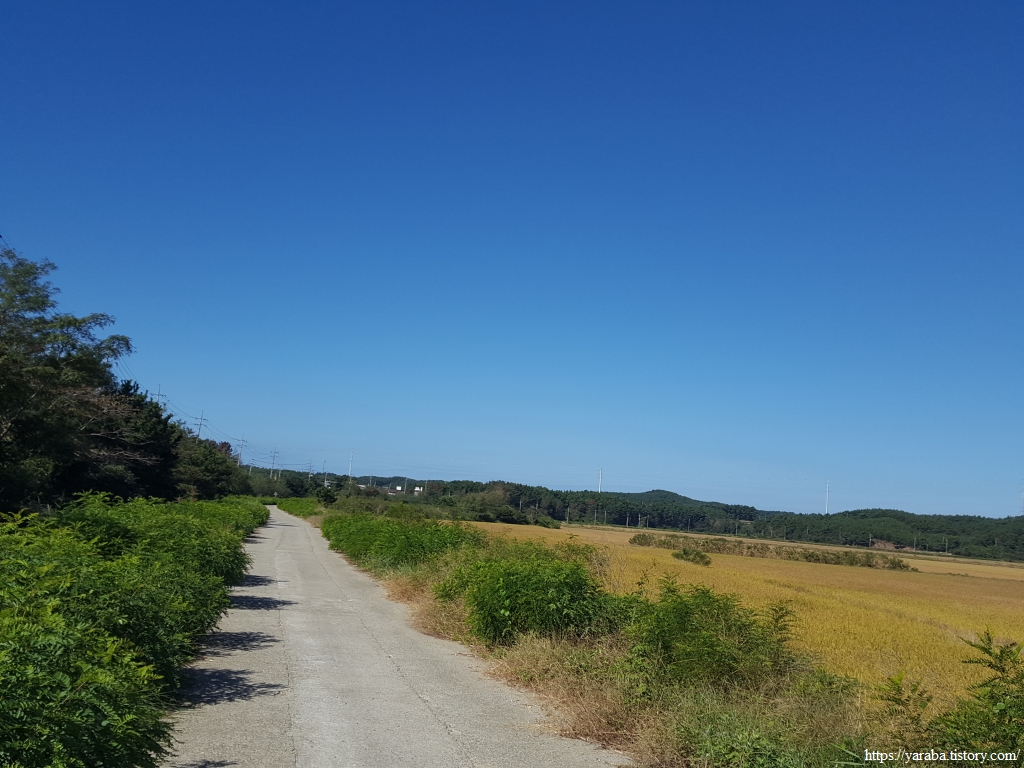 방조제 끝자락에 이르러 본격적으로 당암리 들길로 진입한다.