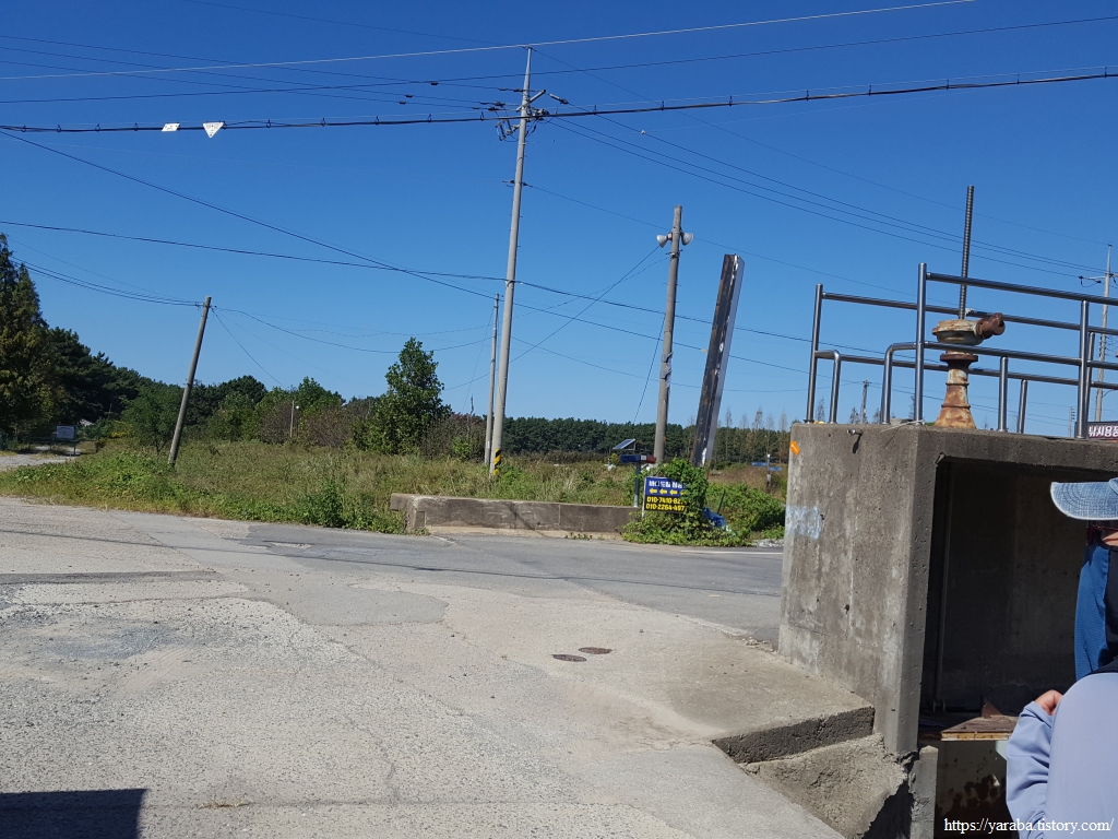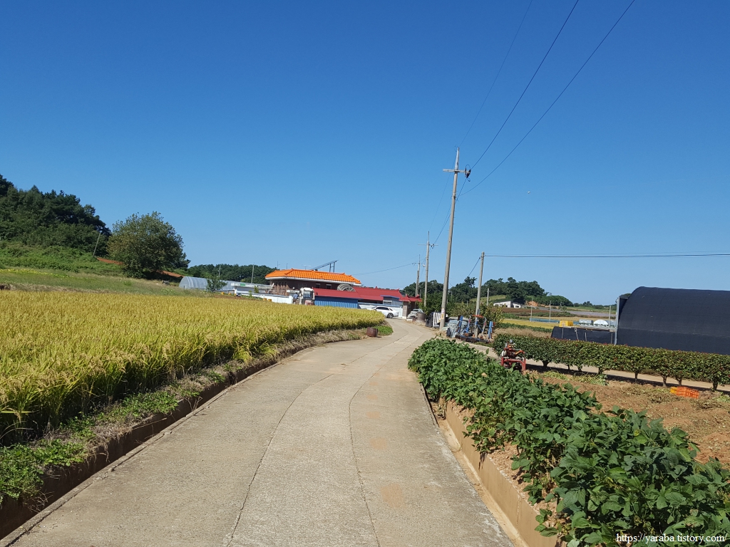 언덕을 내려오면 당암리 경로당을 지나서 천수만로 도로를 만난다.