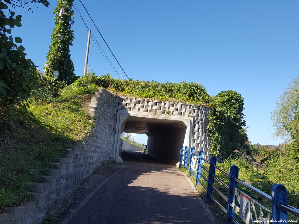 부남호를 뒤로하고 굴다리를 통과하여 길을 이어간다.