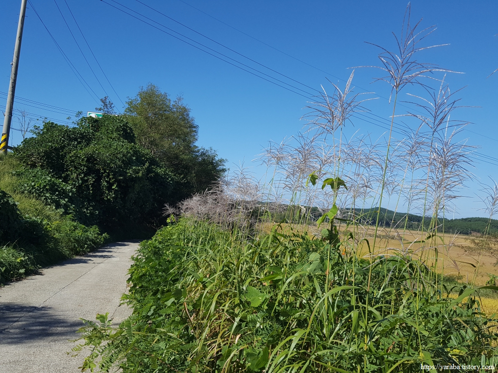 억새가 바람 따라 춤을 추는 마을길을 걷는다.