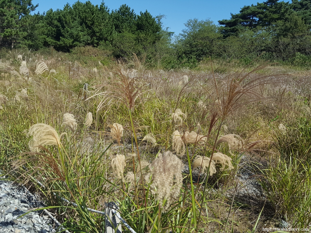 신온 1리 마을길을 걸어가는데 억새가 공터에서 자리를 잡아 가을 분위기를 한껏 올려준다. "아아~ 으악새 슬피 우니 가을인가요"하는 유행가 가사에 등장하는 으악새는 새 이름이 아니라 바람에 흔들리는 억새를 표현한 것이라 한다. 가을 들판을 걷고 있다는 것만으로 마음에 기쁨이 흘러넘친다.