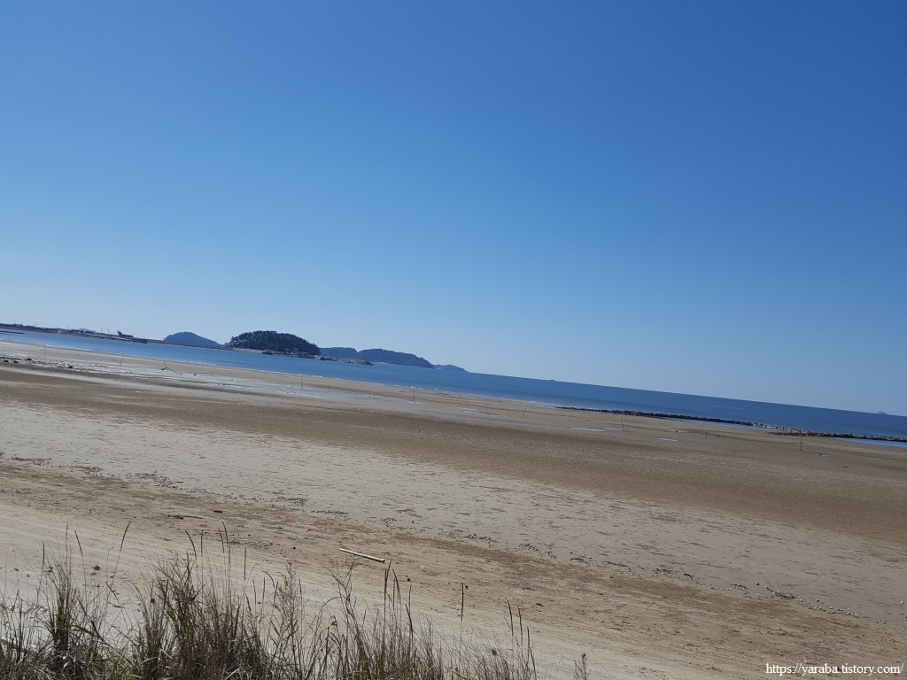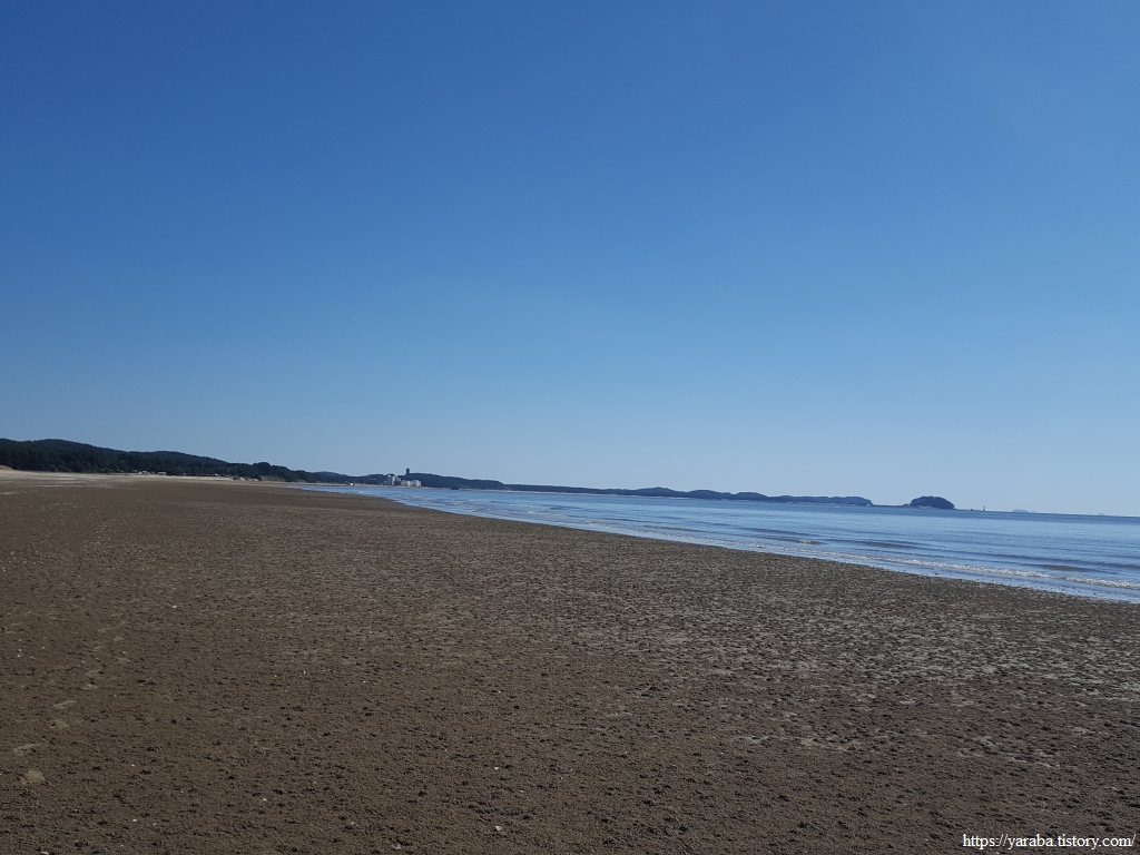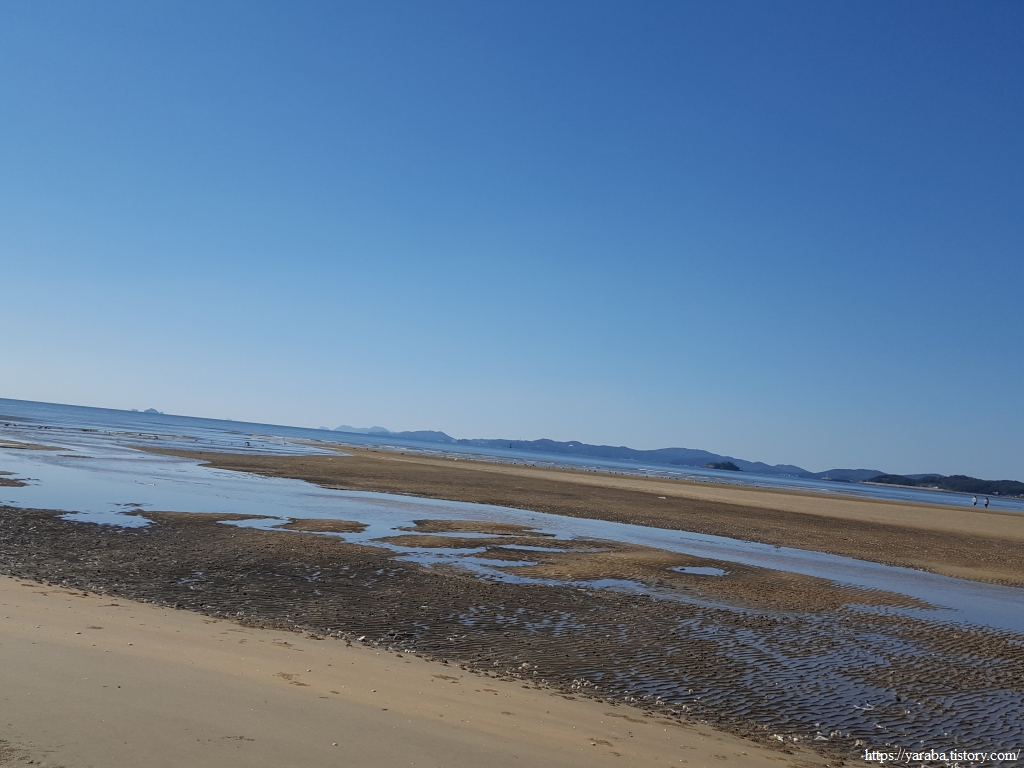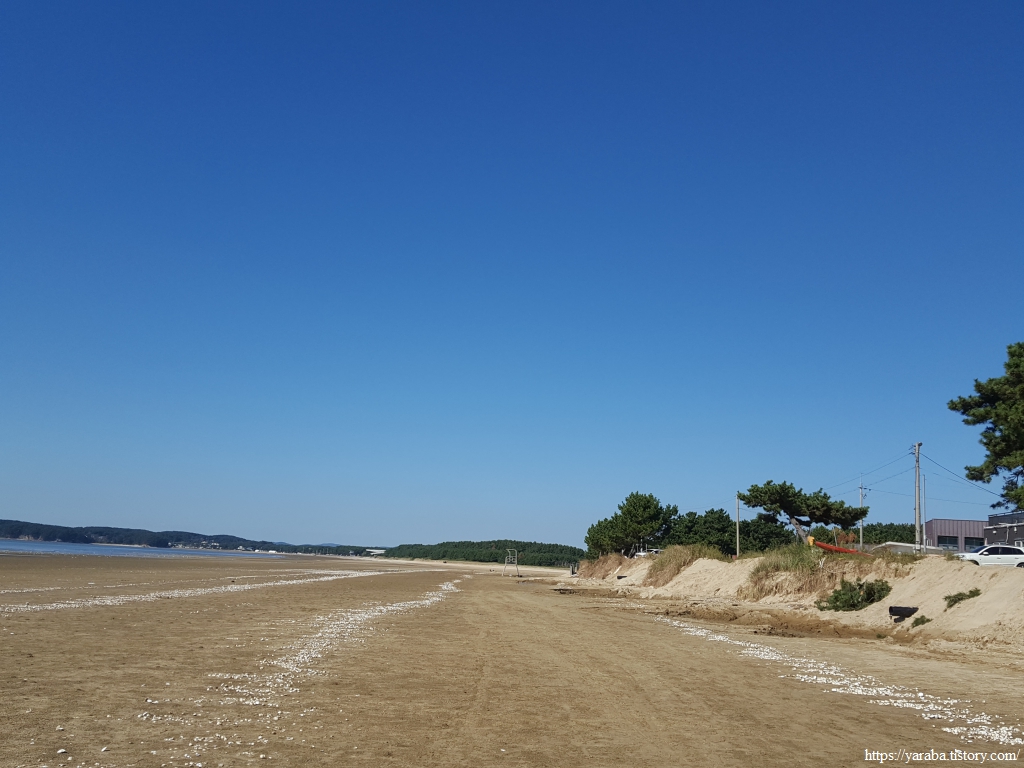 국립공원의 모래사장답게 솔숲 바깥의 해변으로는 깔끔한 모래사장이 광활하게 펼쳐져 있다. 질퍽한 갯벌이 아닌 넓은 백사장을 마주하니 또 다른 느낌이다. 이곳에 "솔모랫길"이라는 이름이 붙은 이유를 알만하다.