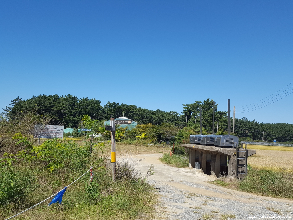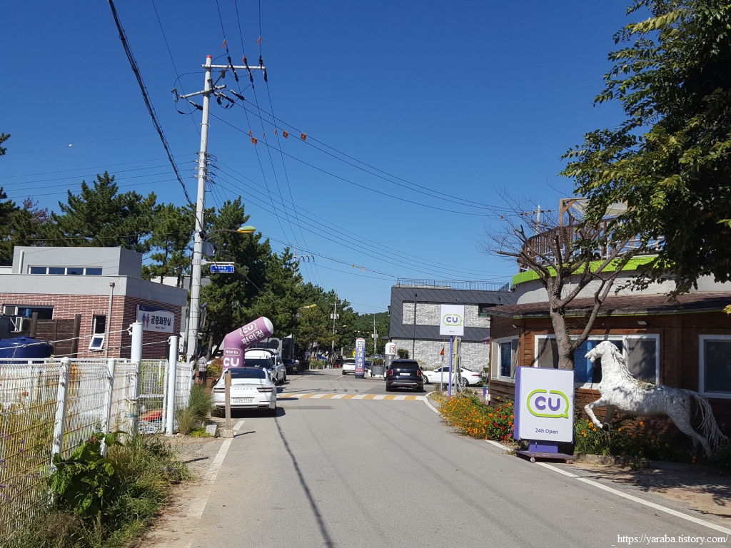 길은 청포대 해안선이 아닌 펜션지역 뒤편의 도로를 따라 이어진다. 편의점에서 잠시 휴식도 취하고 시원한 아이스바도 먹으며 길을 이어간다.