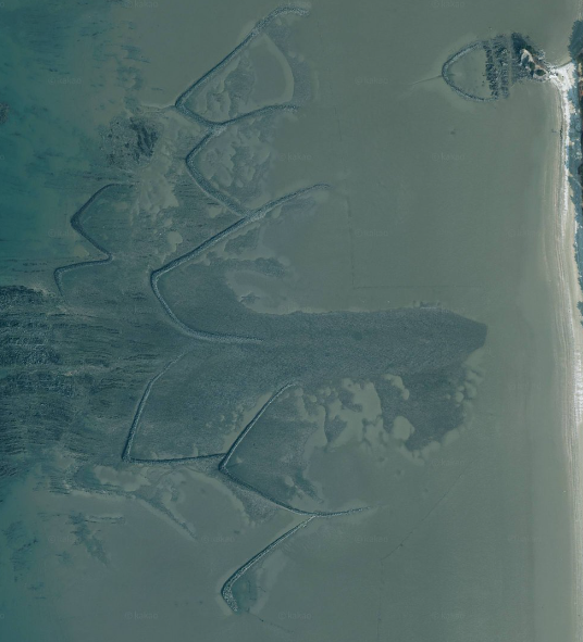 위성사진을 보면 백사장에 독특하게 서 있는 바위가 있는 위치부터 여러 개의 독살들이 설치되어 있는 것을 확인할 수 있다.