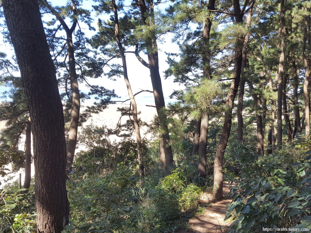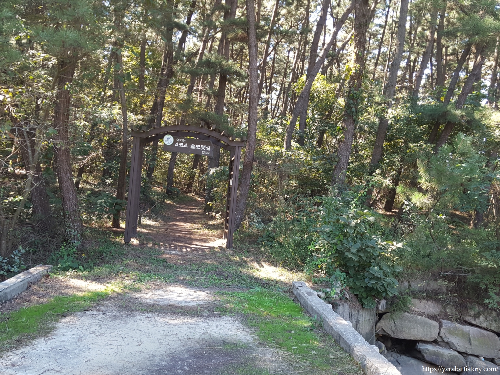 소나무 잎사귀 사이를 통과해 들어오는 따스한 햇살을 만끽하며 솔숲길을 걸어간다.