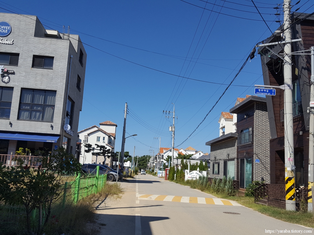 청포대 해수욕장의 펜션촌을 가로질러 해수욕장 끝자락으로 향한다.