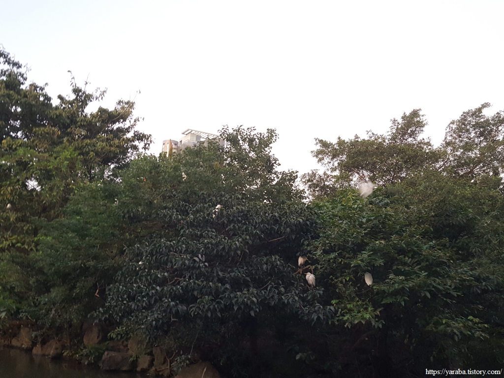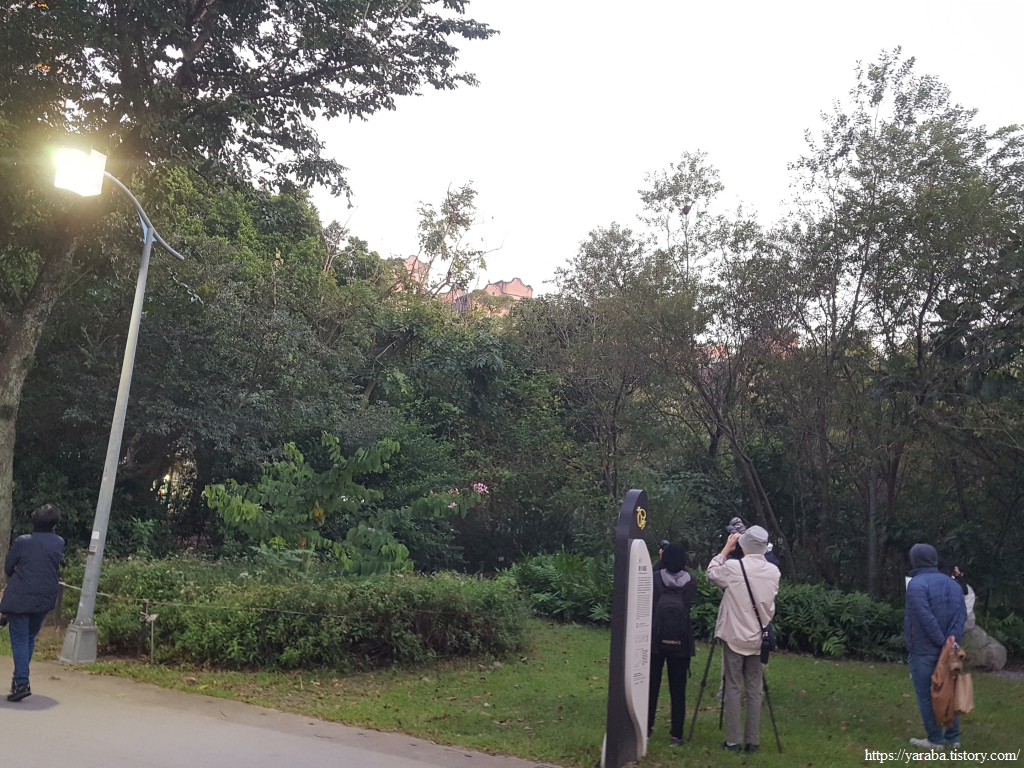 공원의 가로등이 하나둘 켜지기 시작하는 시각, 공원에는 전문적으로 탐조하는 사람들이 있을 정도로 나무와 숲이 잘 가꾸어져 있었다.