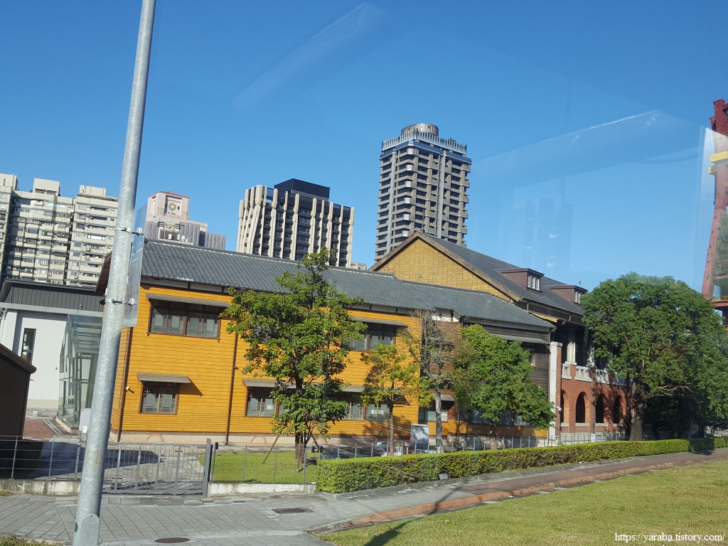 블루라인 시티투어 버스는 타이베이 북쪽의 고궁 박물관을 기점으로 동일한 코스를 남북으로 오가는 코스였다면 레드라인은 101 타워를 기점으로 동서로 오가는데 101 타워로 갈 때와 타이베이 메인역으로 돌아올 때의 경로가 두 블록 정도 차이가 있다. 시작은 서문(Ximen, 西門) 쪽으로 돌아서 간다. 서문으로 돌아가는 교차로에 있는 철도박물관에서는 근대 분위기가 물씬 묻어난다.