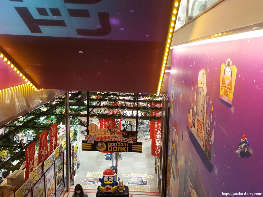 화려한 건물이 전자상가인 줄 알고 사람들을 따라 들어갔는데 알고 보니 일본 잡화점 체인점인 돈키호테였다. 광고판도 안내도 전부 일본어 천지이다. 우리나라의 다이소와 비슷한 모양인데 내부에는 푸드 코트도 있었다.