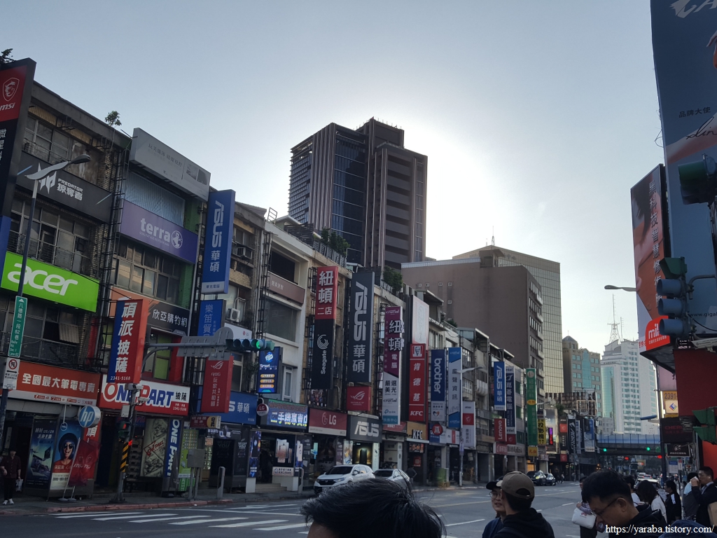 광화 디지털 플라자에 가기 전에 길거리 상가부터 둘러본다. 우리나라 용산 전자상가 분위기 딱 그것이다. 국내 전자 회사 간판도 보이고 에이서, 아수스등 대표적인 대만의 브랜드들이 즐비하다.