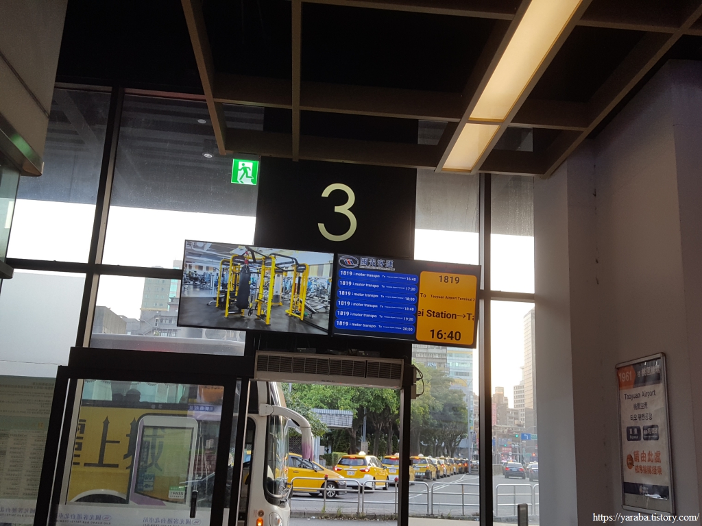 타이베인 메인역 M3 인근 승차장에서 1819번 공항버스를 타고 타오위안 공항으로 이동한다. 서쪽의 공항으로 향하는 타이베이의 석양이 작별 인사를 건넨다.