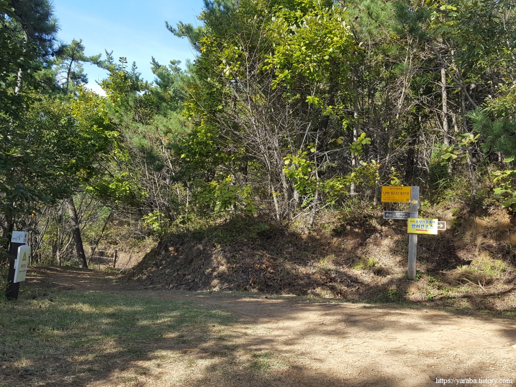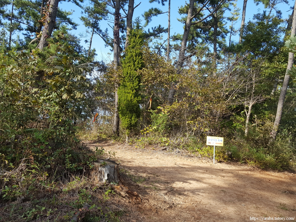 양식장이 위치하고 있는 작은 어리골 팻말에 화장실 위치를 적어 놓았는데, 길을 잘 관리하고 있음을 보여 주는 작은 흔적이지 않은가 싶다. 양식장이 깊은 골짜기에 있다 보니 이곳을 다니는 기사분들의 노고가 장난이 아니겠구나 하는 생각이 든다. 서해랑길 73코스는 작은 어리골 위쪽의 능선으로 이어지는 임도를 따라 내려가는데, 좁고 경사도 있는 임도를 운전하느라 트럭 기사분이 힘들어하는 모습을 보았었다.