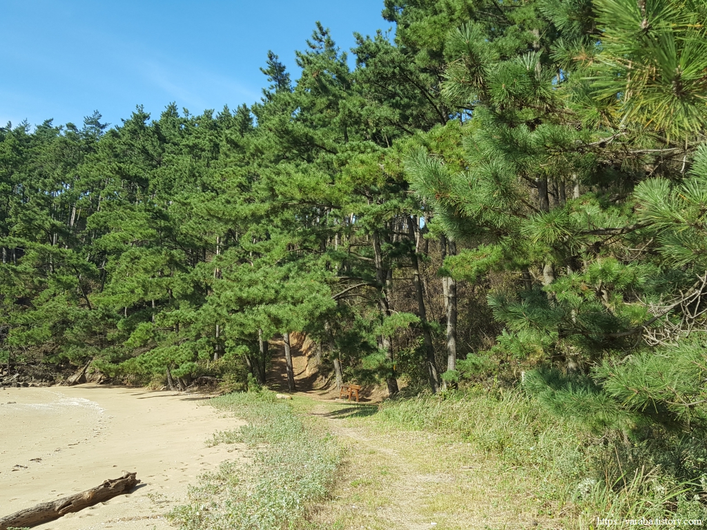 해안으로 내려왔으니 다시 산길로 올라가는 것은 솔향기길에서 숙명과 같은 흐름이다. 올라갔다가 내려갔다가를 반복하는 해안길 걷기는 젊은 군인들은 감당할만할지 몰라도 결코 쉽지 않다. 짧고 높지 않은 산길이라고 방심했다가는 큰코다치는 은근히 쉽지 않은 길이다.