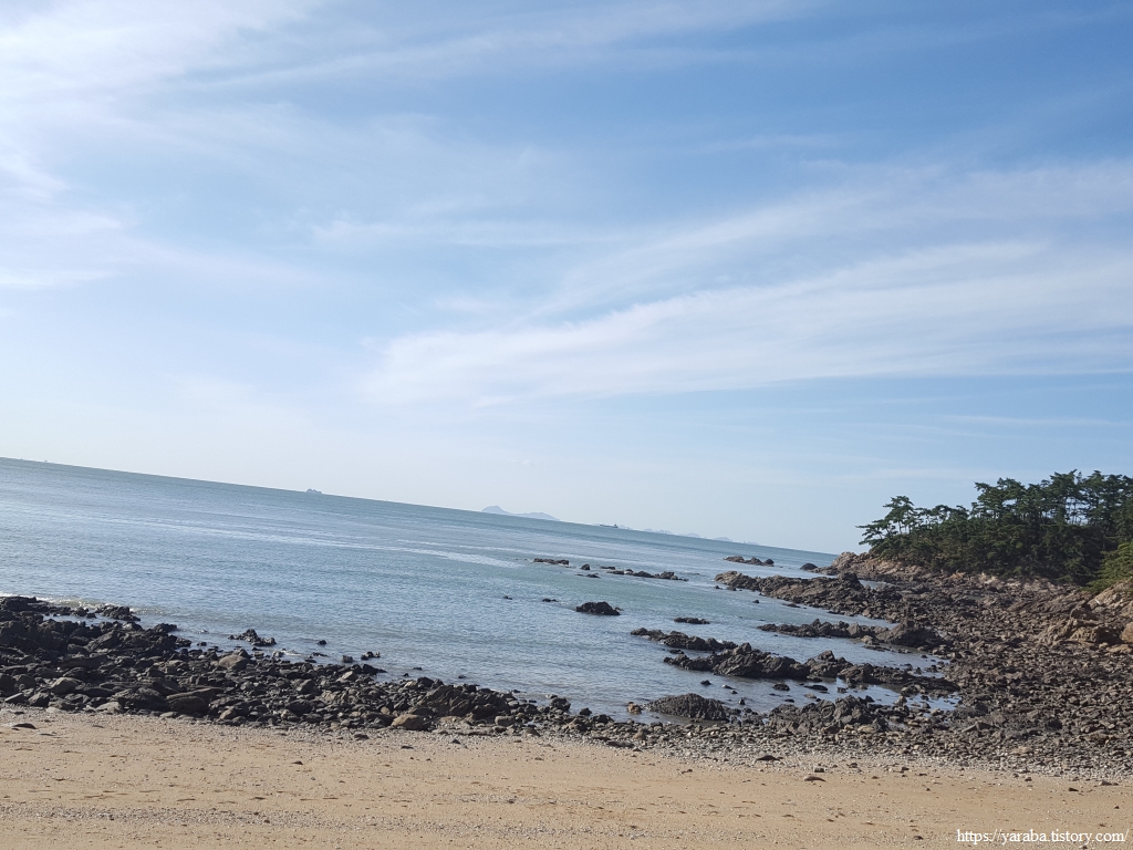 첫 산인 육골재 자락의 고개를 넘어가면 펜션 한 채가 위치한 해변을 만난다.