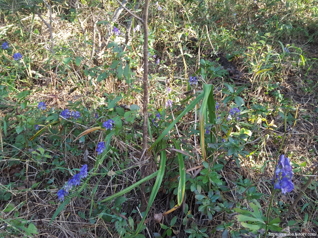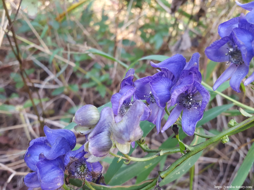 숲길에서 보랏빛의 투구꽃을 만났다. 뿌리에 독성이 있다는 식물이다.