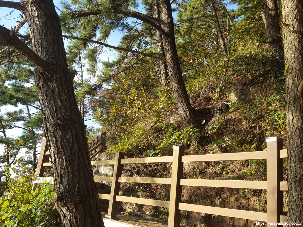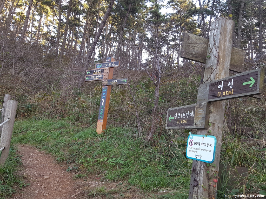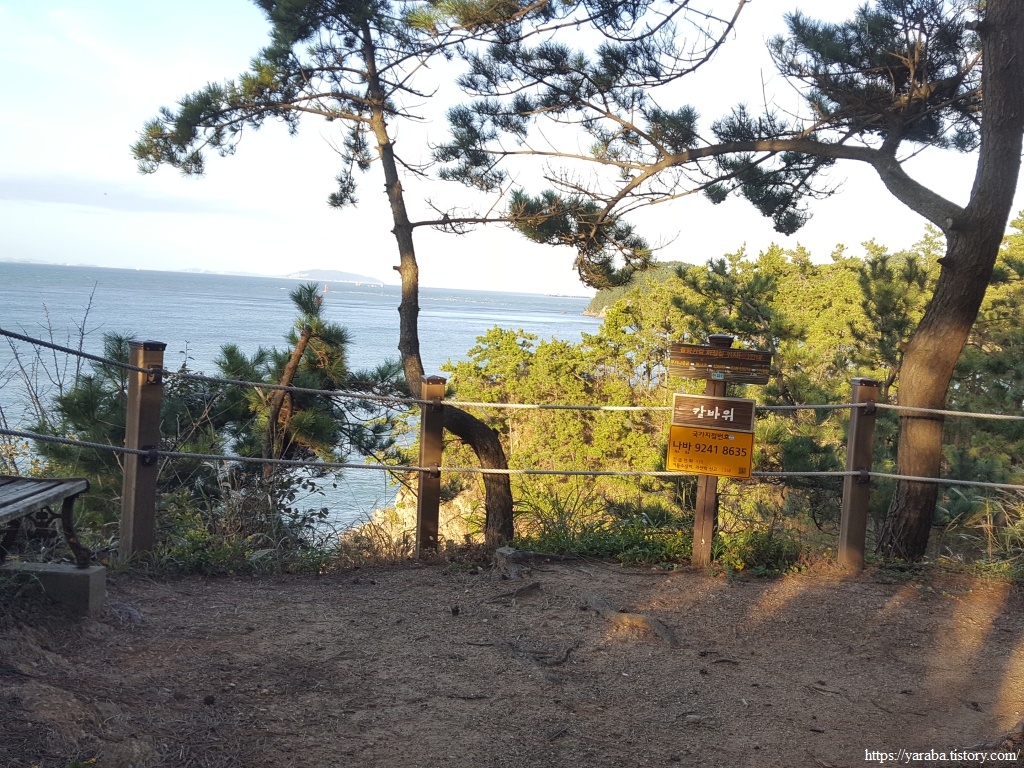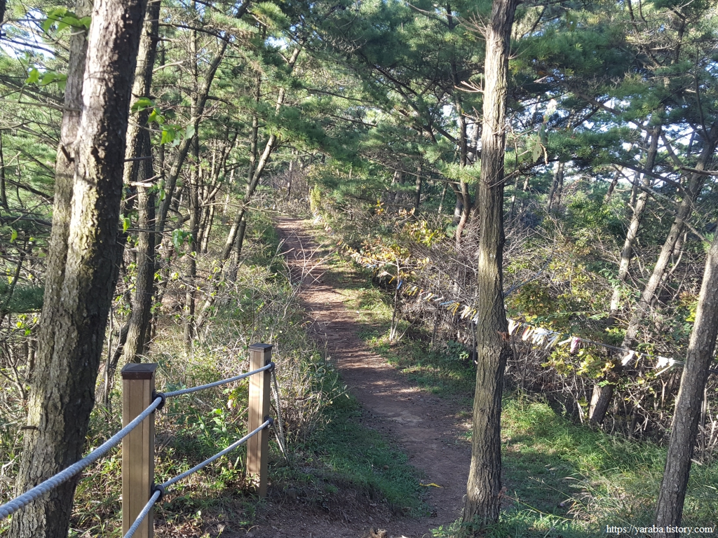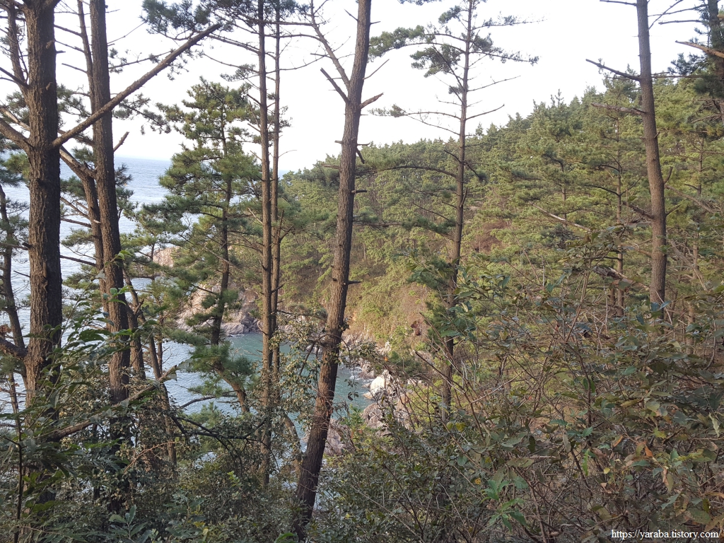 그래도 해안길을 조심조심 걷다 보면 다음 버스를 탈 수 있을까 하는 생각도 세상일에 대한 생각도 어느새인가 날아가 버린다. 지레너머를 지나 산허리로 지나는 숲길을 걸아간다.
