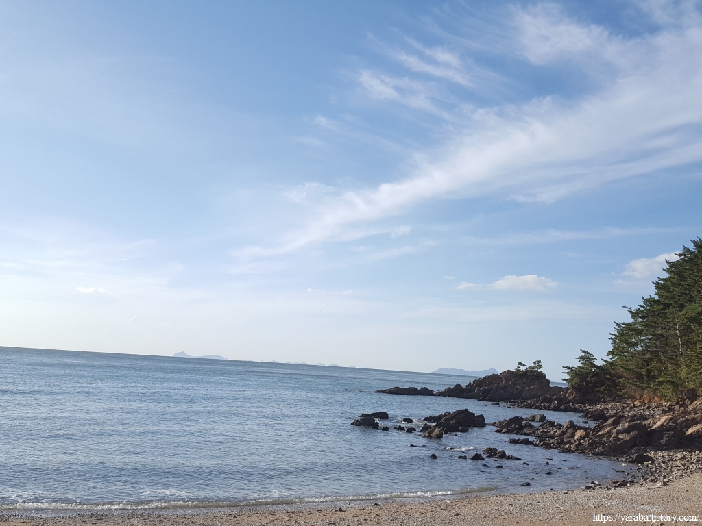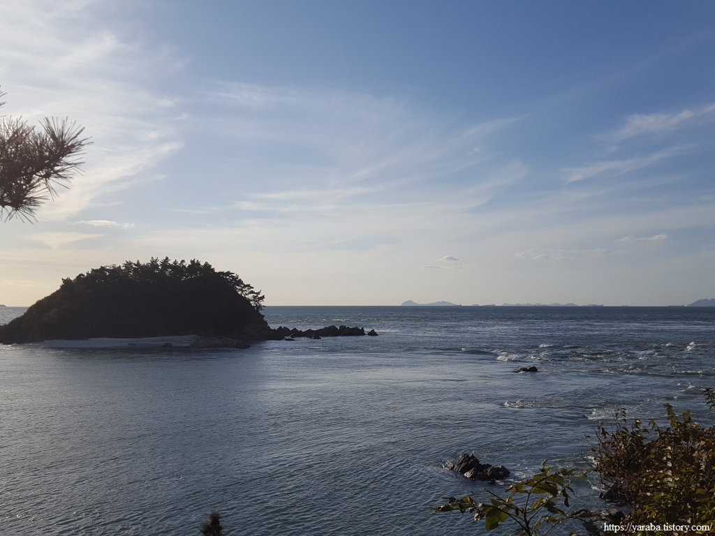 지금은 물이 들어와서 작은 모래 해변과 여섬을 보지만 물이 빠지면 여섬까지 이어진 바위 해변이 그대로 드러나는 곳이다.