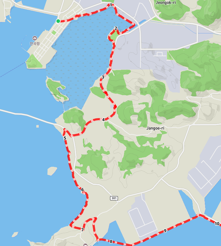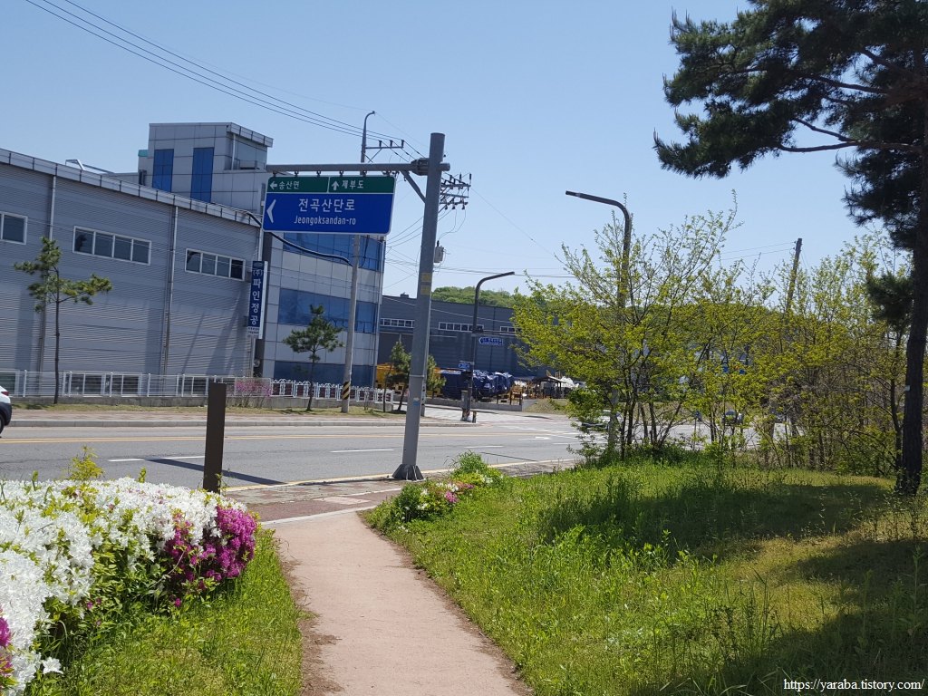 공원을 빠져나온 길은 산업단지를 벗어나서 해양공단로 도로를 따라 남쪽으로 이동한다.