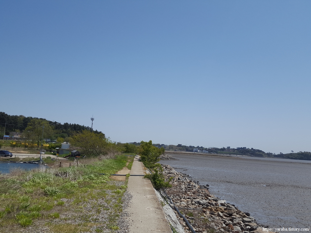 살곳이 마을 끝에서 길은 서쪽 해안 둑방길로 방향을 잡는다. 이곳은 화성시 서신면 송교리에 해당한다.