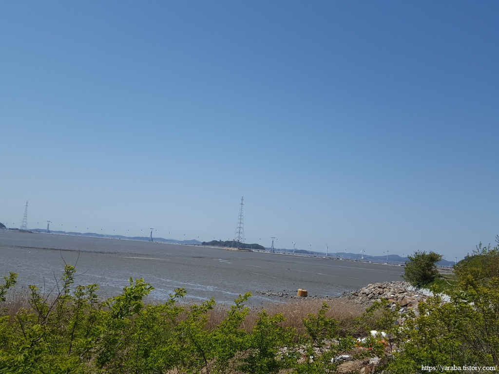 산업단지 아래를 지난 길은 해안길을 따라서 계속 서쪽으로 이동한다. 인천공항으로 향하는 비행기들이 다니는 길목이다 보니 고개를 들면 하늘을 가르는 비행기를 쉽게 볼 수 있는 공간이기도 하다. 언제 또 비행기 타고 여행 갈 수 있을까 하는 막연한 상상에 빠지게 한다.