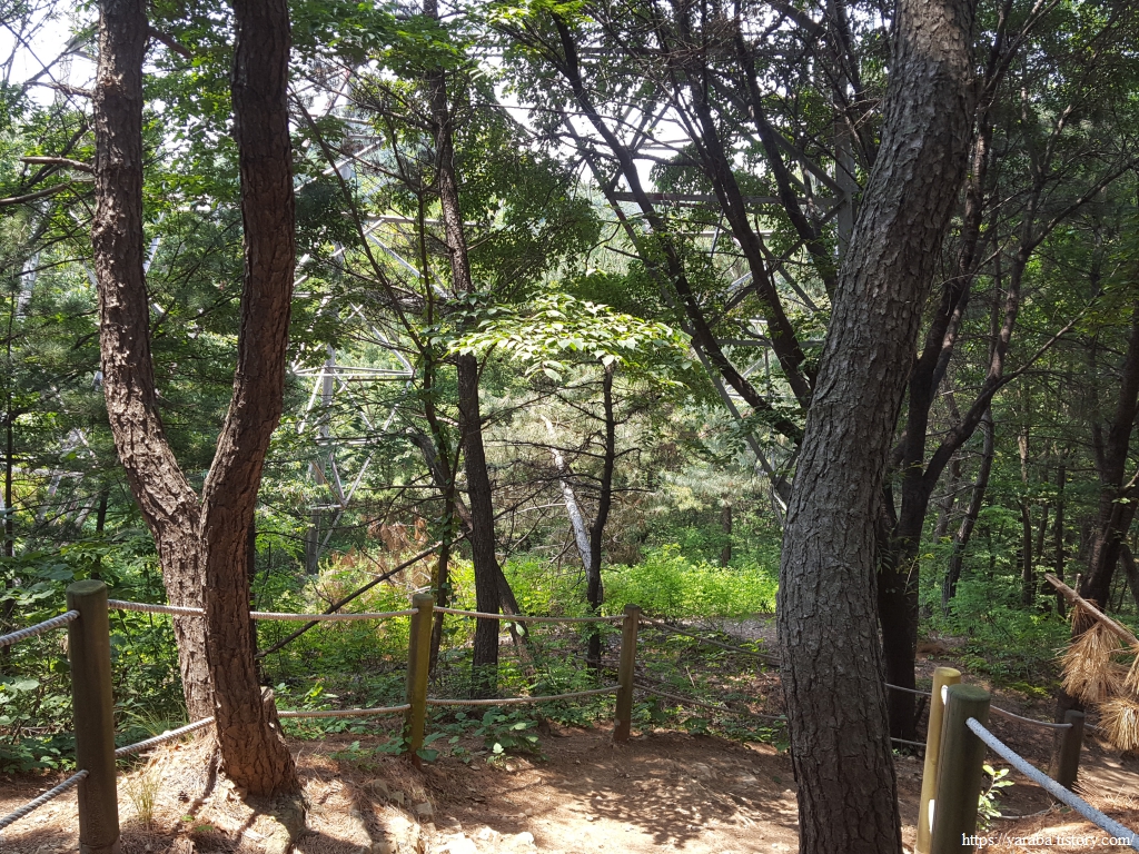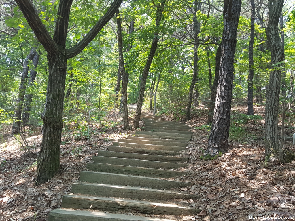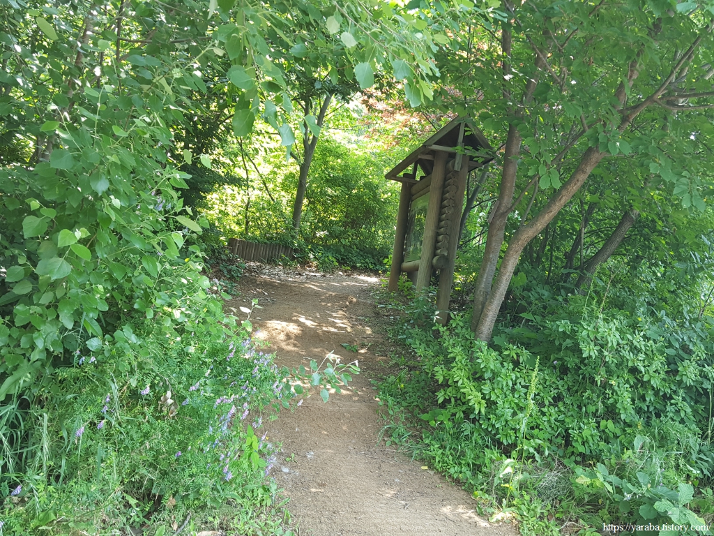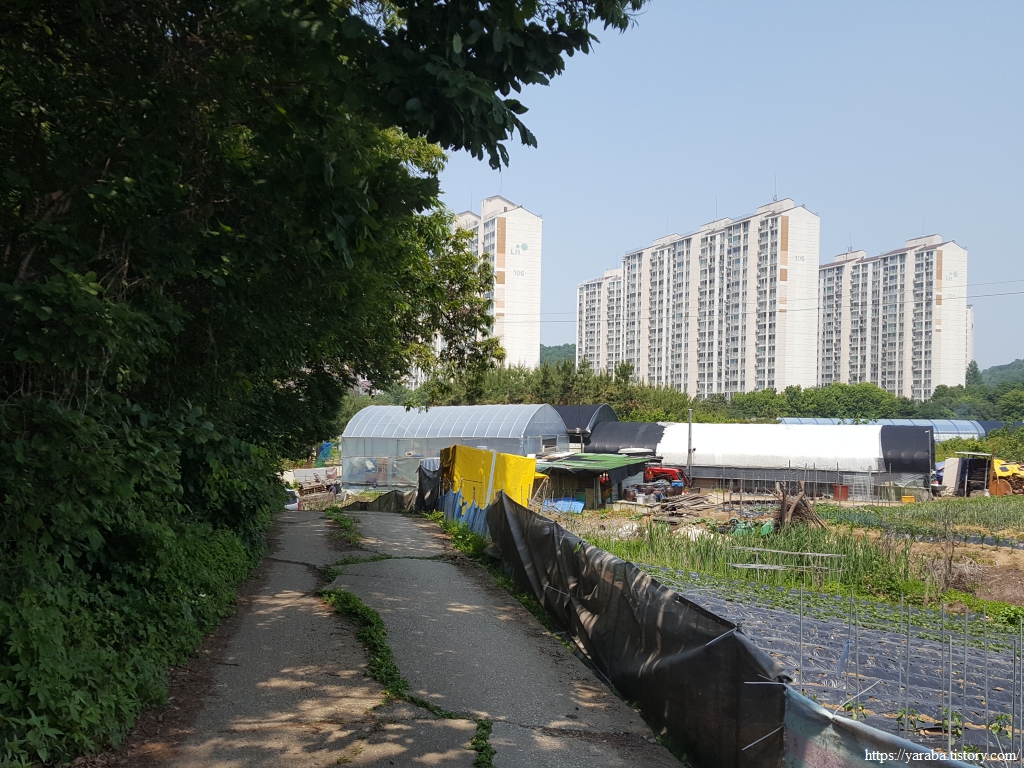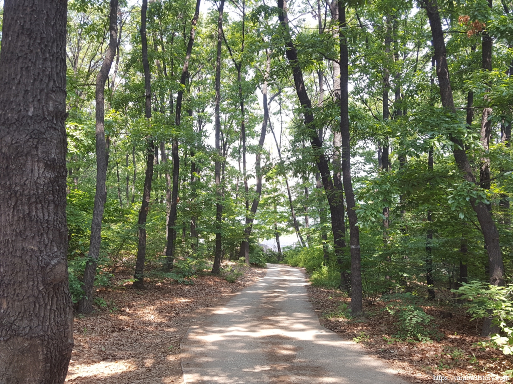 담쟁이가 뒤덮고 있는 다리를 통해서 영동 고속도로와 소래로 도로를 가로질러 오봉산 자락으로 진입한다.