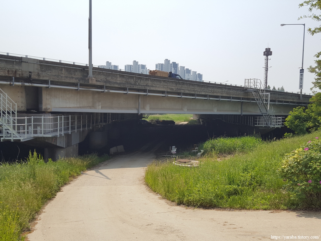 길은 어느덧 도림고가교 아래를 통과한다. 장수천 건너편으로 소래 습지 생태공원이 위치하고 있는 지점이다.