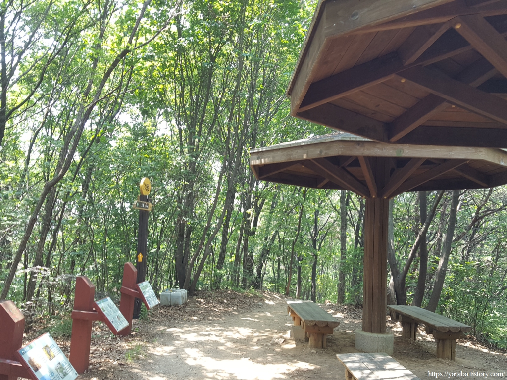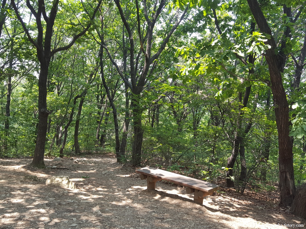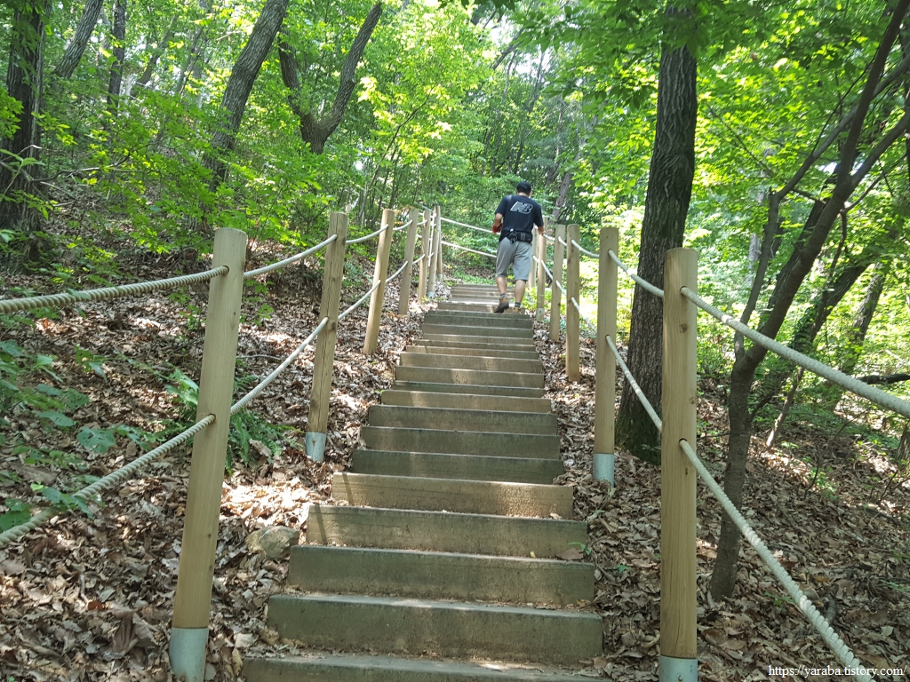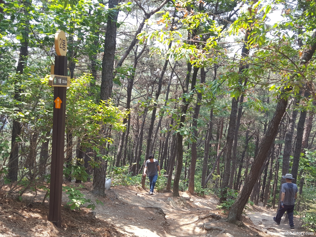 1봉 쉼터에서 잠시 휴식을 취한 다음에는 내리막길을 걸으며 2봉으로 향한다. 숲으로 들어오는 햇살을 나무들이 많이 막아주고 있지만 이마로 흐르는 땀은 어쩔 수가 없다.