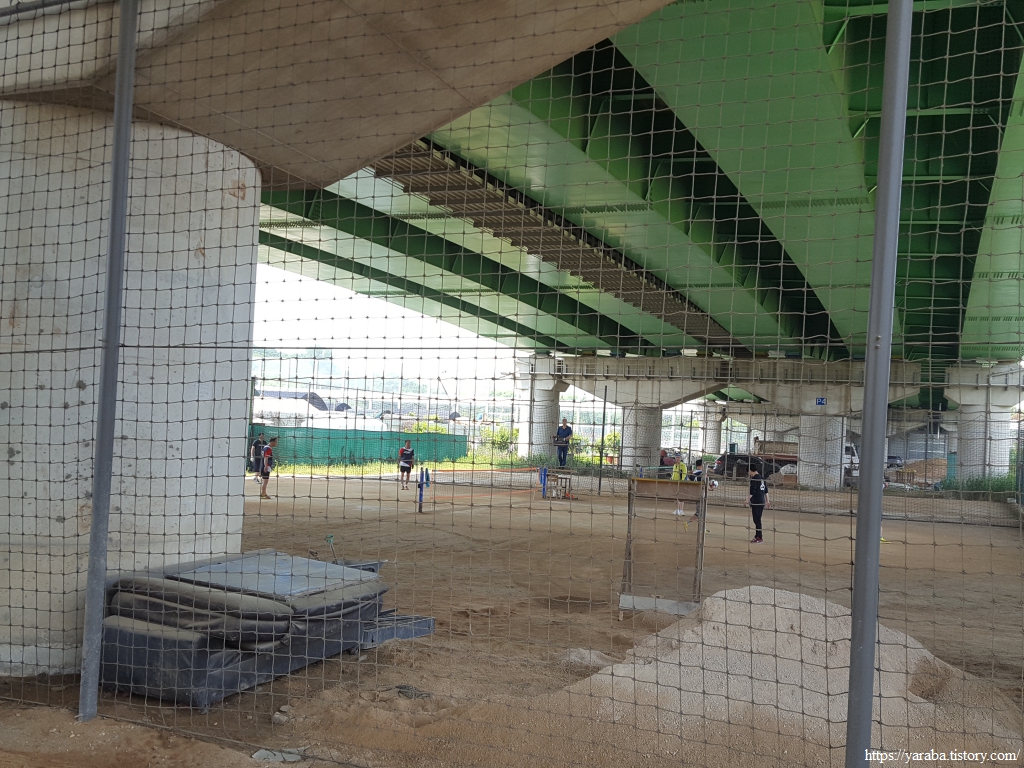 도림고가교 아래를 통과한 길은 천변 산책로를 벗어나 서쪽으로 이동하며 오봉산으로 향한다. 고가교 아래에서 족구를 즐기고 계신 분들을 보니 다리 아래에서 족구를 하기 위한 아주 좋은 공간을 확보하신 모습이 부러웠다. 한때는 점심을 먹은 다음이면 동료들과 건물 옥상에서 족구를 즐기던 때도 있었는데......