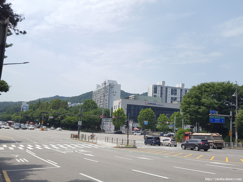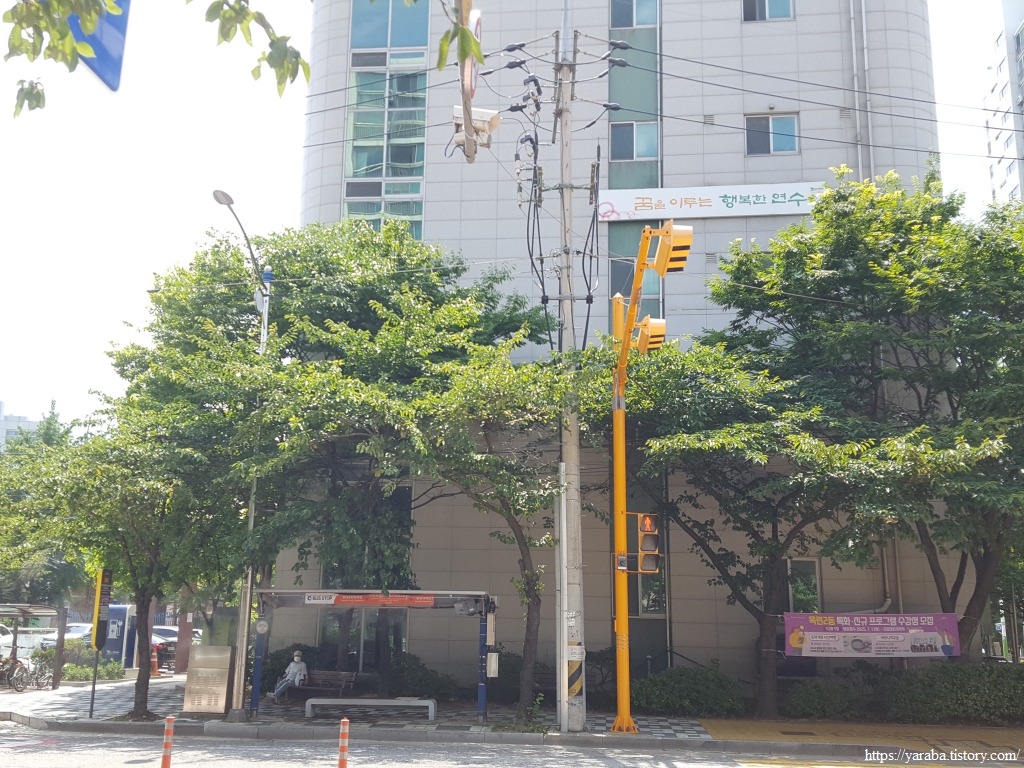 95코스 시작점인 선학역으로 가는 길에서도 만났던 비류대로를 따라서 가는 길이다. 가로수가 만들어 주는 그늘을 따라 걷는다. 이렇게 폭염이 절정인 시기에는 이곳의 가로수도 잎이 풍성한 플라타너스였으면 얼마나 좋았을까! 하는 상상을 하게 된다. 연수문화원 앞을 지난다.