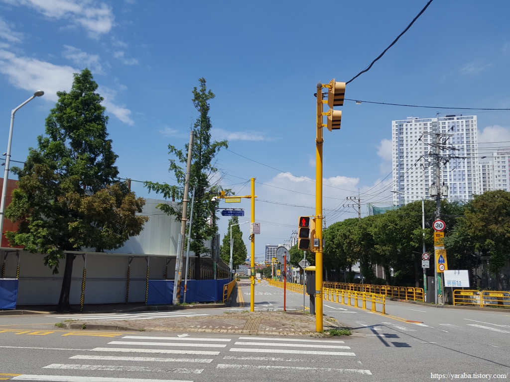 그늘진 수로 옆 산책로는 끝이 나고 드디어 펄펄 끓고 있는 축항대로의 아스팔트 위를 가로질러 가야 한다. 이런 상황에서 우리를 돕는 것은 역시 편의점의 시원한 에어컨 바람과 얼음이 가득한 아이스 아메리카노 한잔이었다. 주유소에 딸린 편의점을 만날 수 있어서 다행이었다.