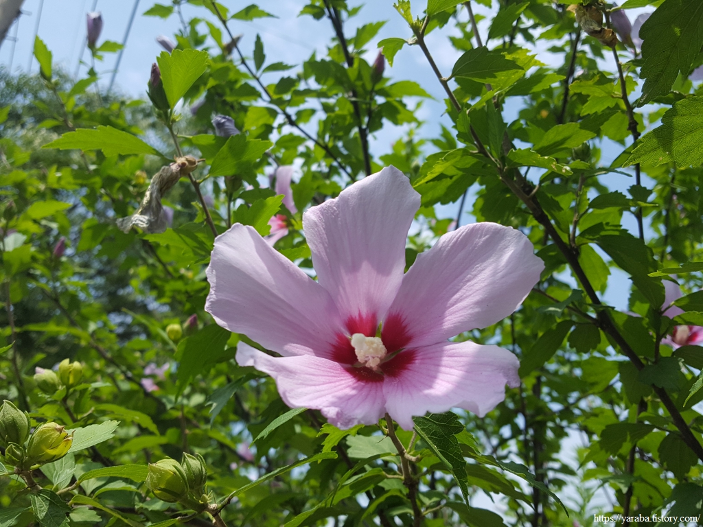 여름은 우리 꽃 무궁화가 절정인 시기이기도 하다. 꽃만 보면 지금이 폭염 가운데 있다는 것이 실감이 나지 않을 정도이다. 무궁화는 덥지도 않은 모양이다. 뜨거운 햇살을 받으면서도 화창하게 꽃을 피운 무궁화가 정말 아름답다.