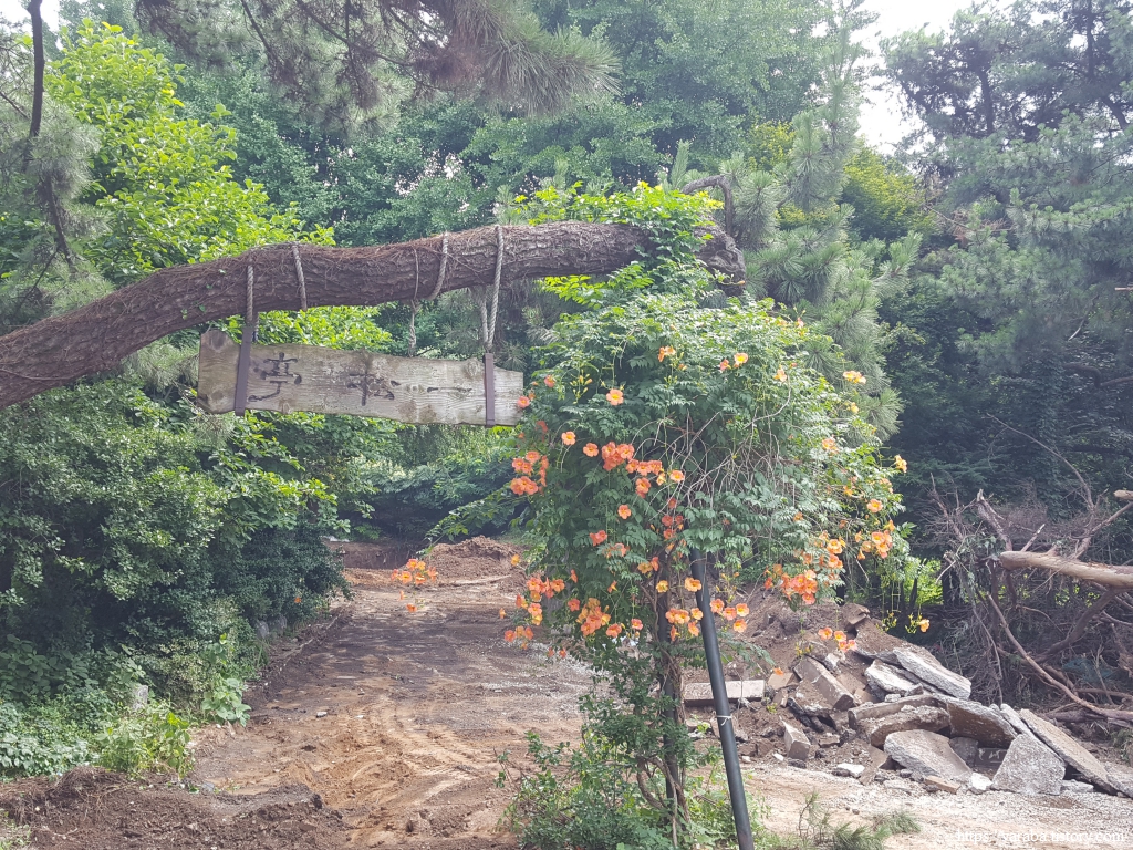 일송정이라는 음식점 입구를 장식하고 있는 능소화가 일품이다. 능소화가 덩굴 식물이었다는 것에 새삼 키우고 싶다는 욕심도 생긴다. 대표적인 여름꽃 능소화의 매력에 흠뻑 빠진다.