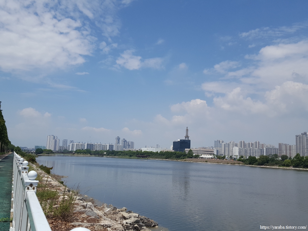 버스 정류장에는 주위 온도를 3~5도 낮추어 준다는 쿨링포그도 분사하고 있었다. 파리 여행에서 에펠탑 앞에 줄지어 늘어선 사람들을 위해 뿌려지던 쿨링포그를 처음 만났었는데 인천 도심 한가운데 사람이 많지 않아도 동작하고 있는 모습이 생경스럽다. 송도 국제도시를 품고 있는 연수구가 인천시 내에서도 부유한 곳이라서 그런가? 생각을 하며 길을 이어간다.