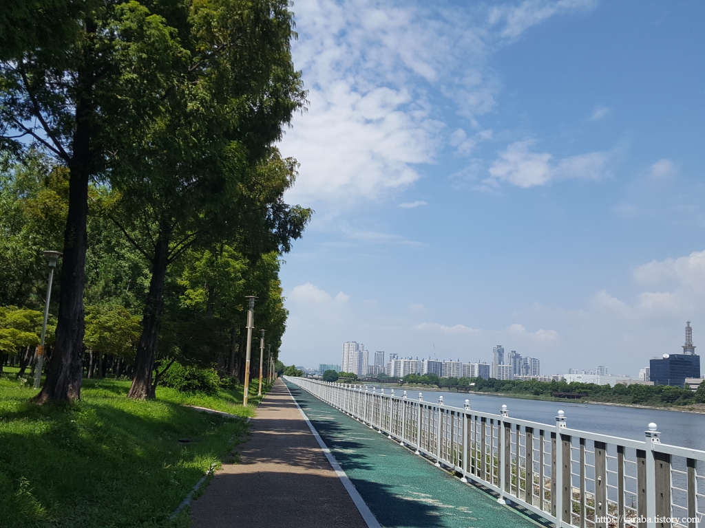 나무 그늘이 우거진 산책로를 걷다가 뒤를 돌아보니 앞으로 만날 그늘 없는 시가지 지역에 왠지 공포감조차 느껴진다. 양산을 들어도 자외선이 가장 강한 오후 시간에 폭염 속에서 그늘 없는 시가지를 걷는 것은 그리 녹록하지 않다.