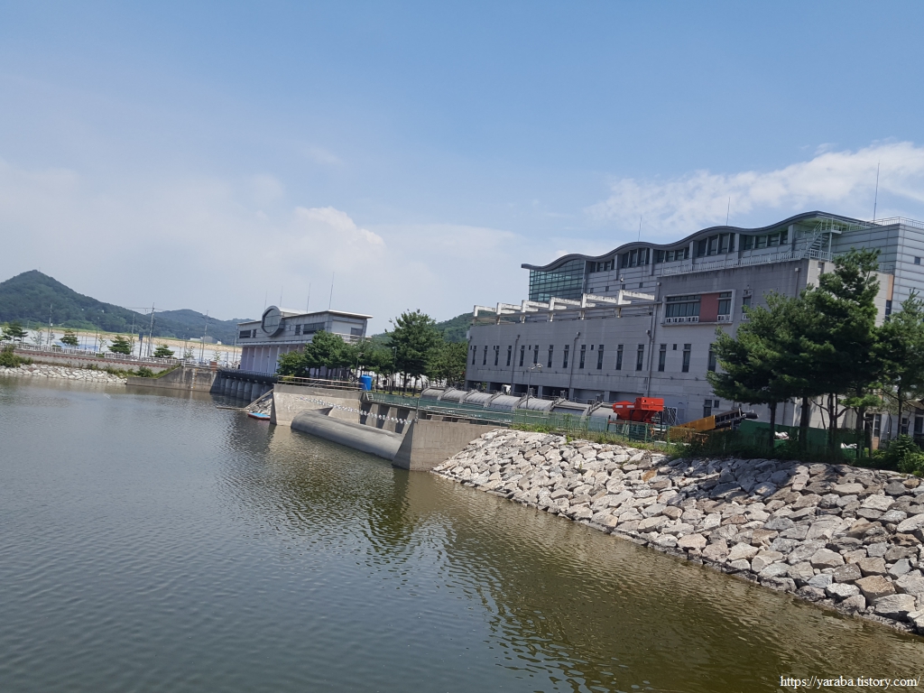 용현 갯골 유수지를 유지하는 수문을 뒤로하고 남항 근린공원의 메타세쿼이아 숲 속에서 잠시 휴식을 취한다. 숲 속에서 돗자리를 깔고 누우니 폭염 속에서도 나름 더위를 벗어나 쉴 수 있었다. 나무가 이렇게 중요한데...... 용현 갯골 유수지는 학익 유수지라고도 부르는데 수로 건너편의 미추홀구와 경계를 이룬다.