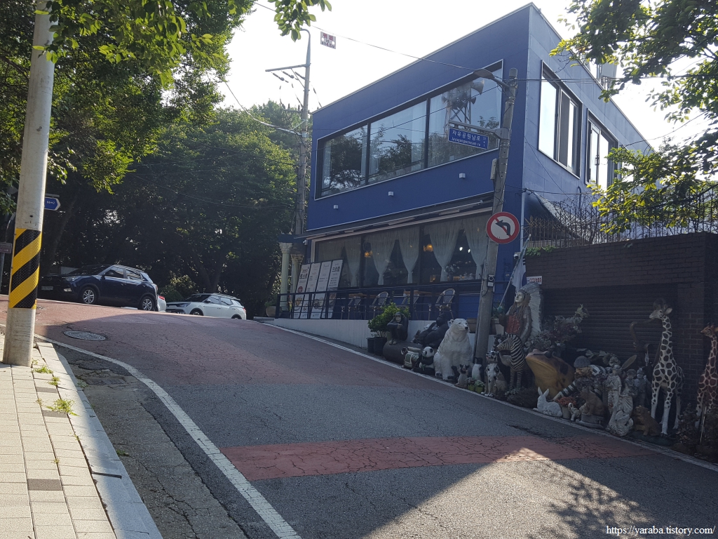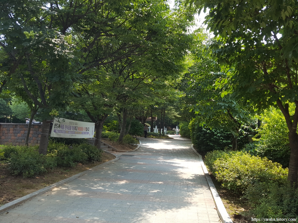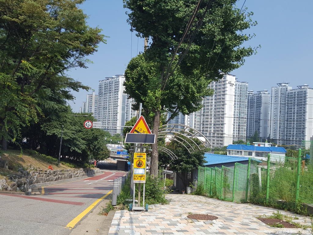 길은 장고개로 도로를 따라서 아파트 단지를 가로질러 길 끝자락까지 올라간다. 마땅한 휴식처를 찾지 못했는데 아파트 단지 앞에 있는 나무 숲 아래 벤치는 우리에게는 그나마 최선의 휴식처가 아닌가 싶다. 아쉬운 것은 화장실이 문제인데 아파트 단지 상가 화장실은 접근이 어려웠고 하는 수 없이 길 끝자락에 있는 편의점 주인의 배려 덕분에 볼일을 해결할 수 있었다.
