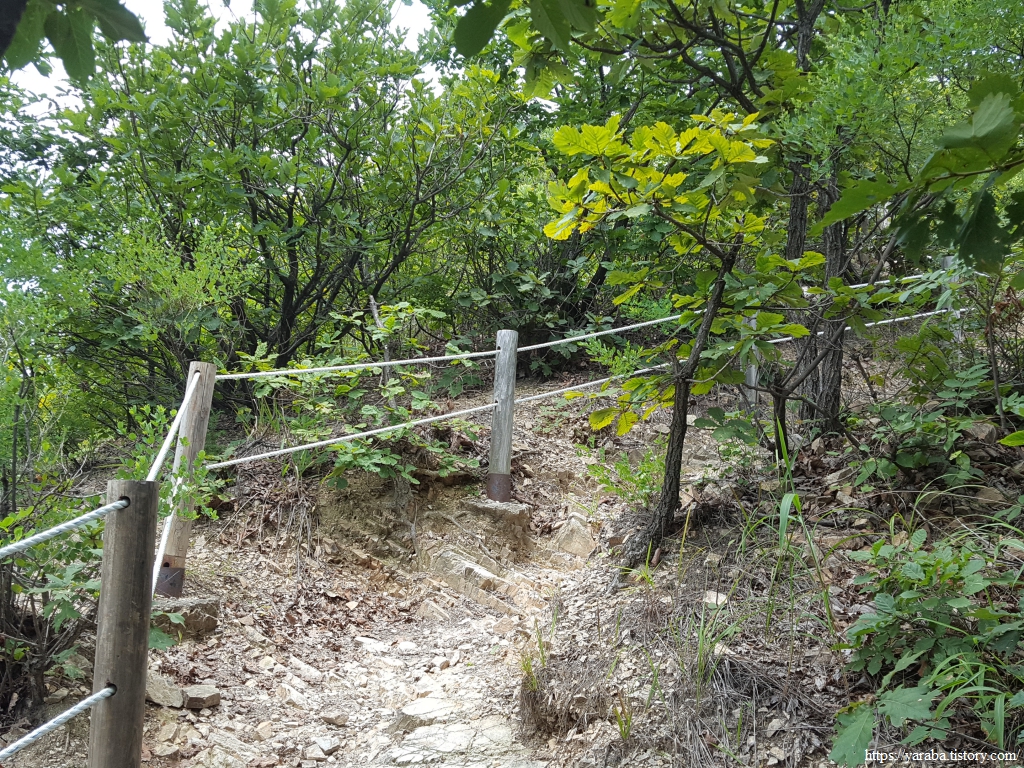 함봉산을 오르는 오르막길은 온몸에 땀을 부르지만 시가지에서 들고 다니던 양산을 접고 진행할 수 있게 하는 숲길이다.