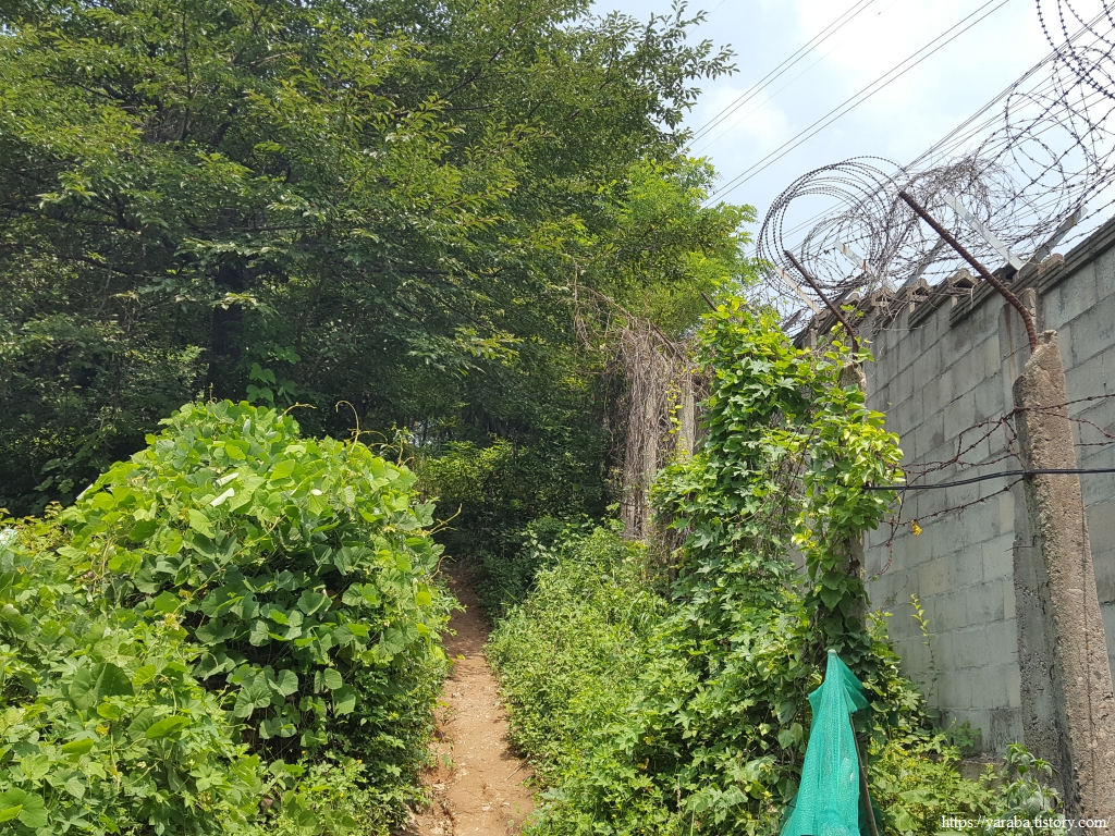 함봉산 정상으로 가는 길은 인천 종주길과 함께한다. 군부대의 거친 담벼락이 조금 부담스럽지만 어쩔 수 없다.