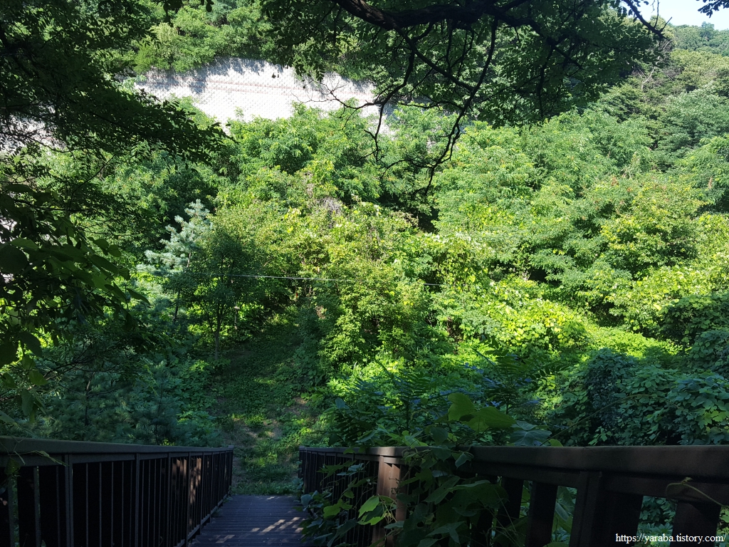 99코스는 봉수대로 위로 조성한 생태 통로로 내려가는 것으로 시작한다.