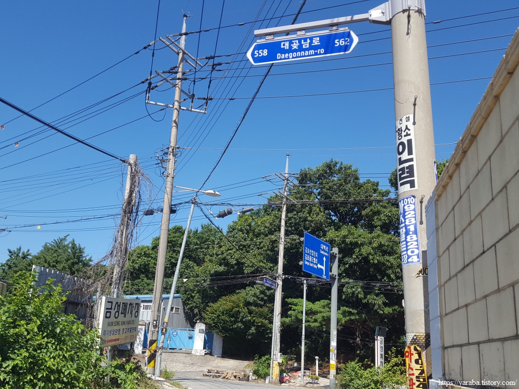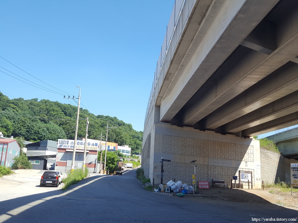 산을 내려오면 다시 양촌읍 유현리의 공단 지역을 가로질러 큰길로 나간다.