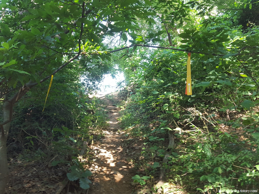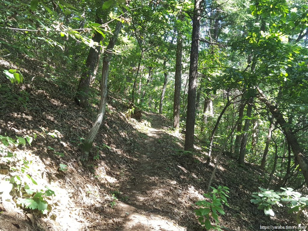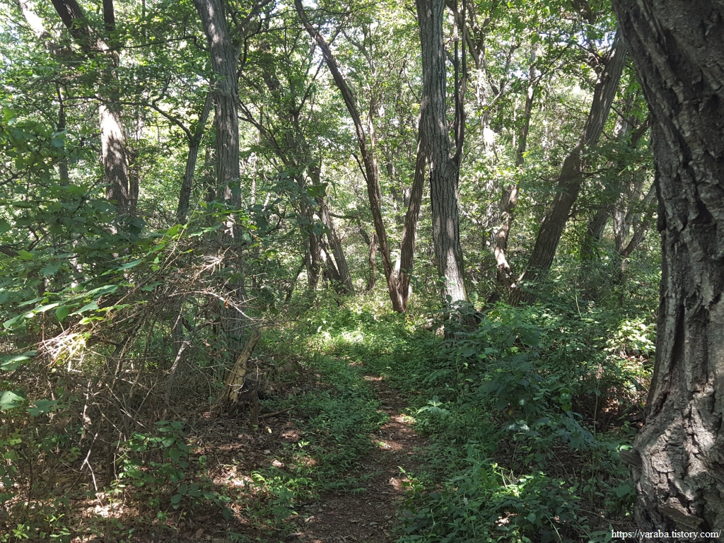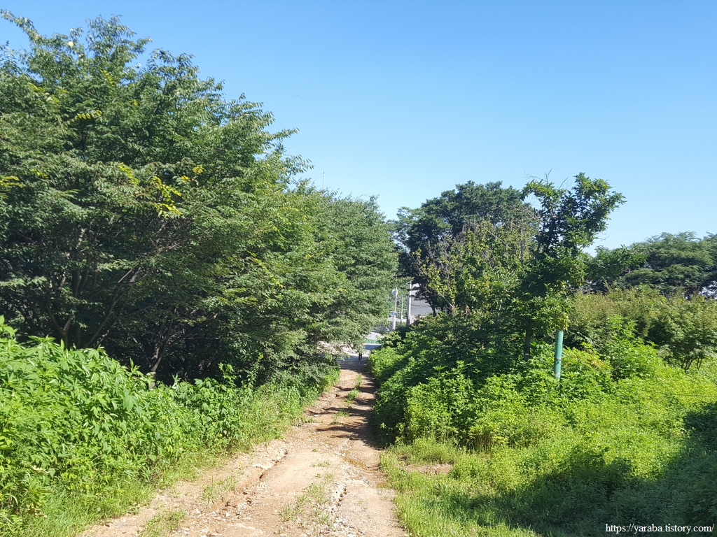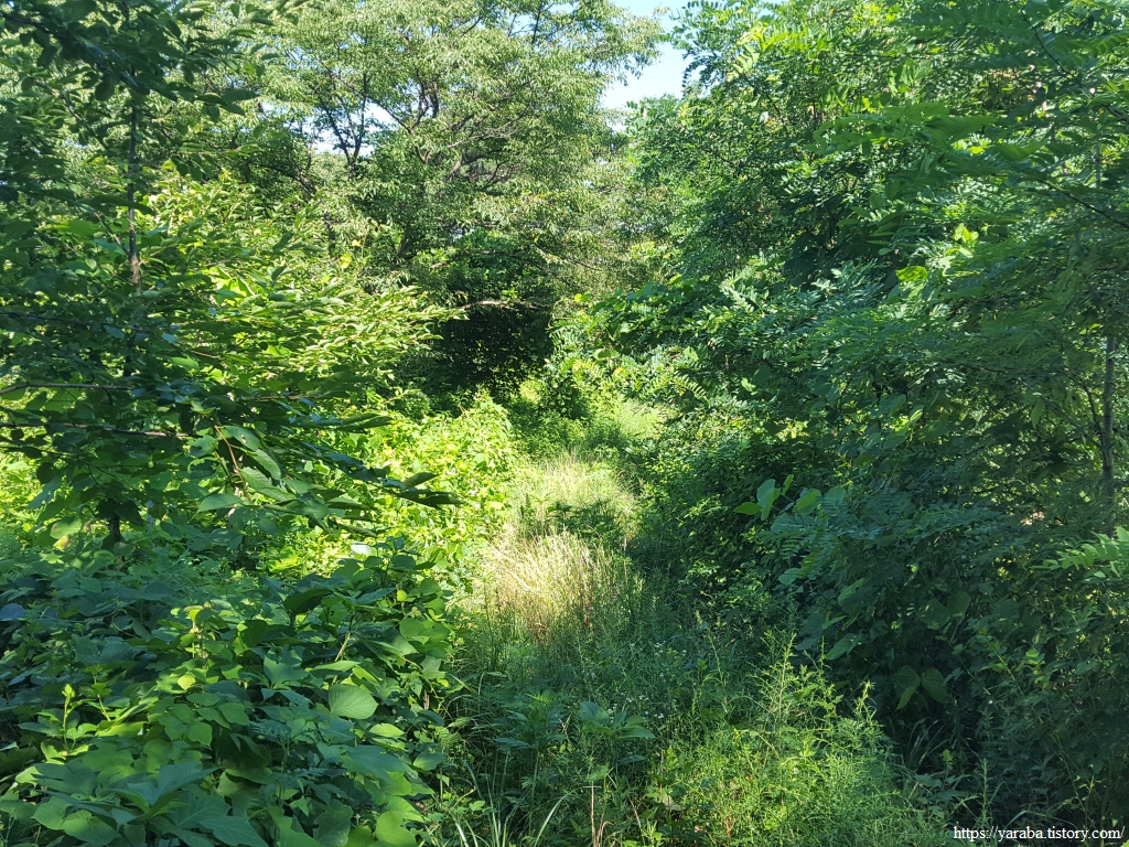 코스 시작점으로의 접근이 어려워서 다니는 사람이 많지 않아서 그런지 풀숲이 우거진 구간도 있기 하지만 뱀만 없으면 이슬이 마른 상태라 문제 될 것은 없다. 이런 산책로 인근에 아파트 단지가 있다면 잘 가꾸어져 있을 텐데 하는 생각도 들었다.