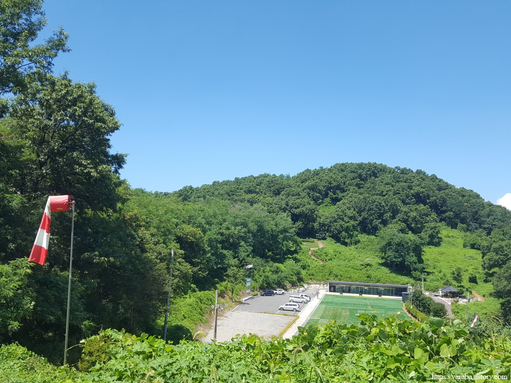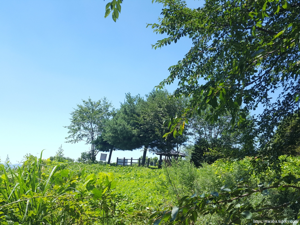 수안산 정상부에는 삼국시대에 돌로 쌓은 산성인 수안산성이 있었다고 하는데, 그래서 그런지 넓은 평지가 있어서 헬기 착륙장도 있고 정자가 있는 작은 공원도 조성되어 있었다.