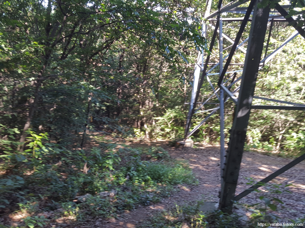 작은 산의 정상부를 지나 하산길에서는 송전탑 아래도 지난다.