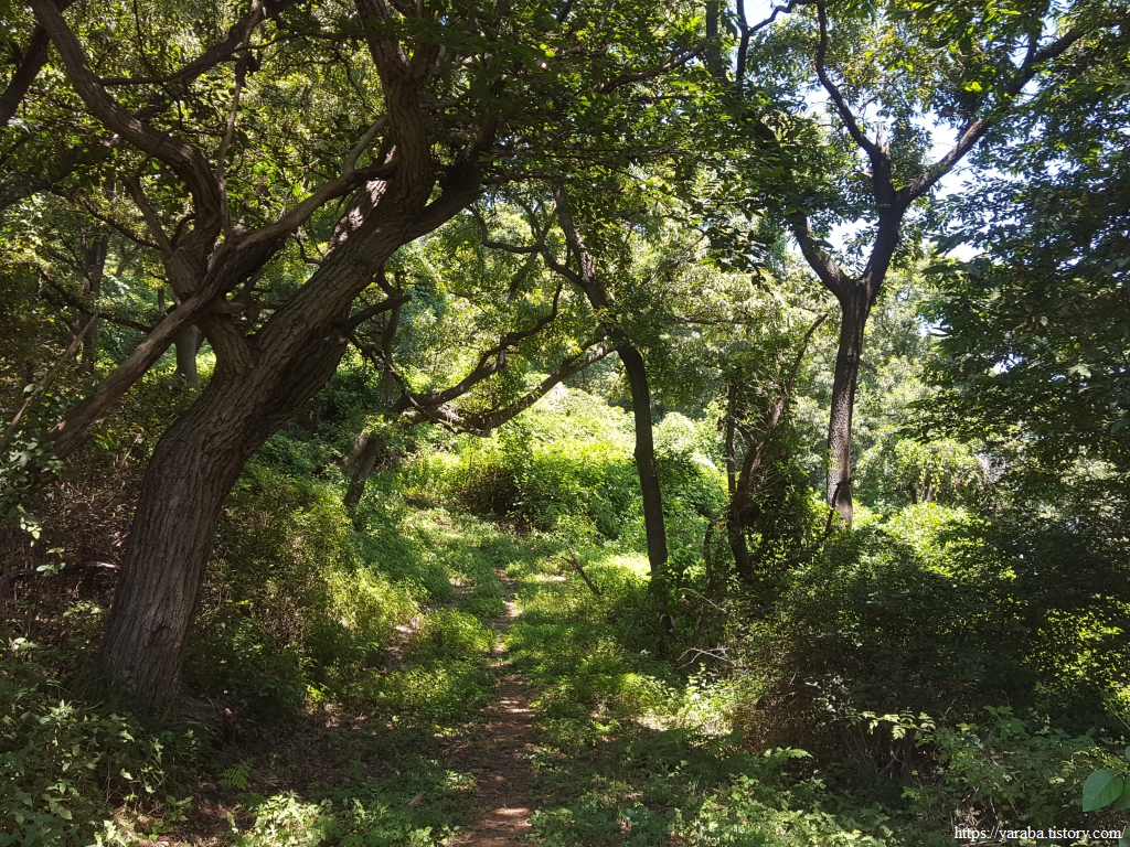그늘 하나 없던 길에서 숲으로 들어오니 그나마 살 것 같다. 태양은 사정을 봐주지 않고 폭격기처럼 뙤약볕을 쏟아부으니 더워도 숲으로 들어오면 숨을 고를 수 있다.