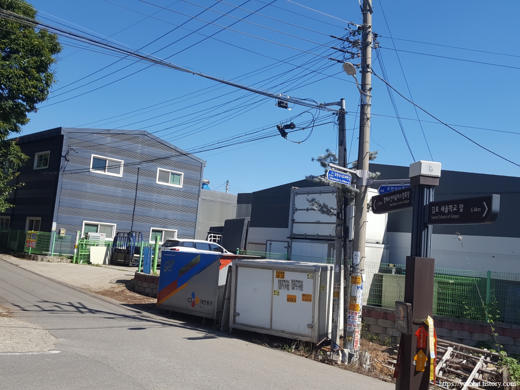 길은 대곶남로 큰길로 나오면서 김포시 양촌읍에서 대곶면으로 진입한다. 좌회전하여 도로를 따라 서쪽으로 이동한다. 그늘 없는 폭염 속 도로변 걷기는 사람을 한계로 내몬다.