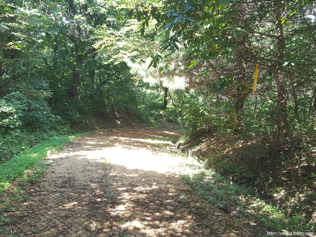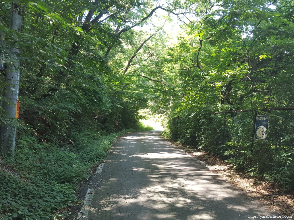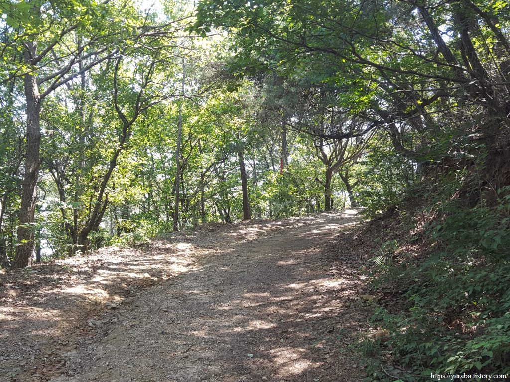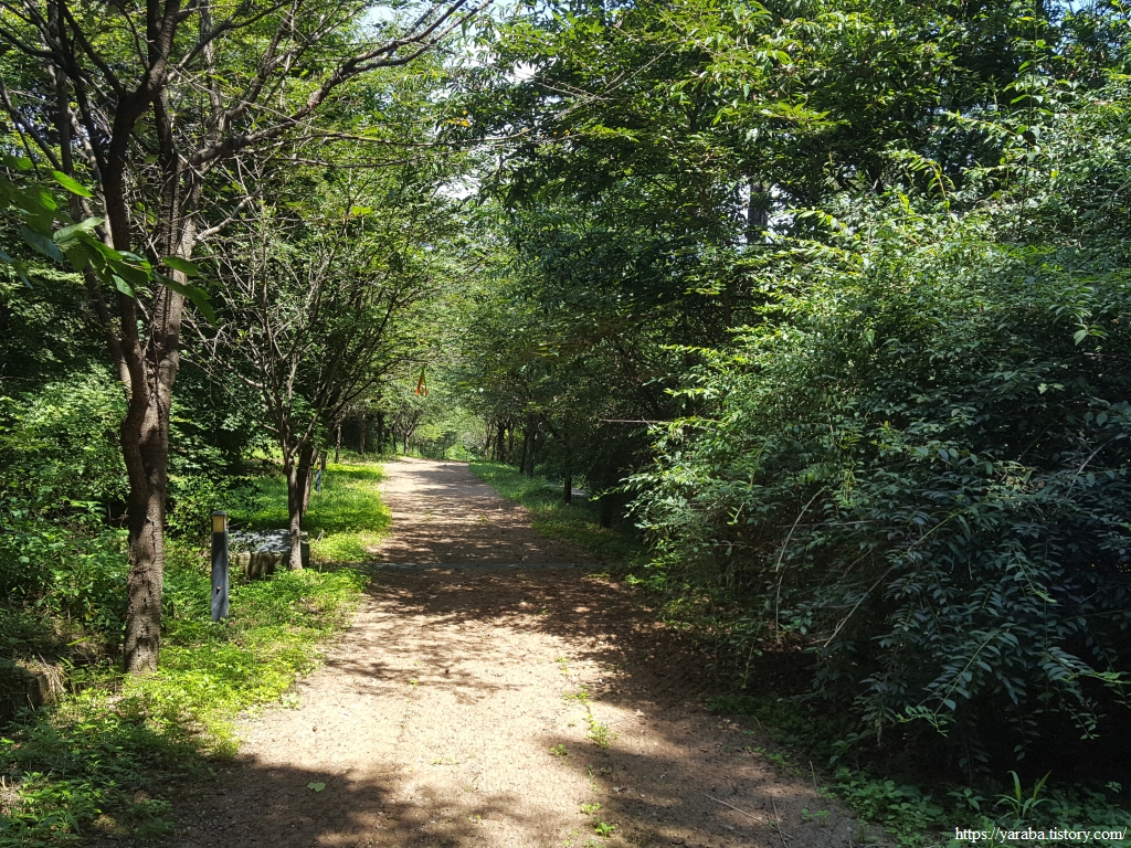하루 중 온도가 가장 높은 시간대라서 나무 그늘도 더위를 식혀주기에는 무리다. 피부로 느끼는 온도만 아니라면 눈으로는 녹음 가득한 쾌적한 숲길이다.